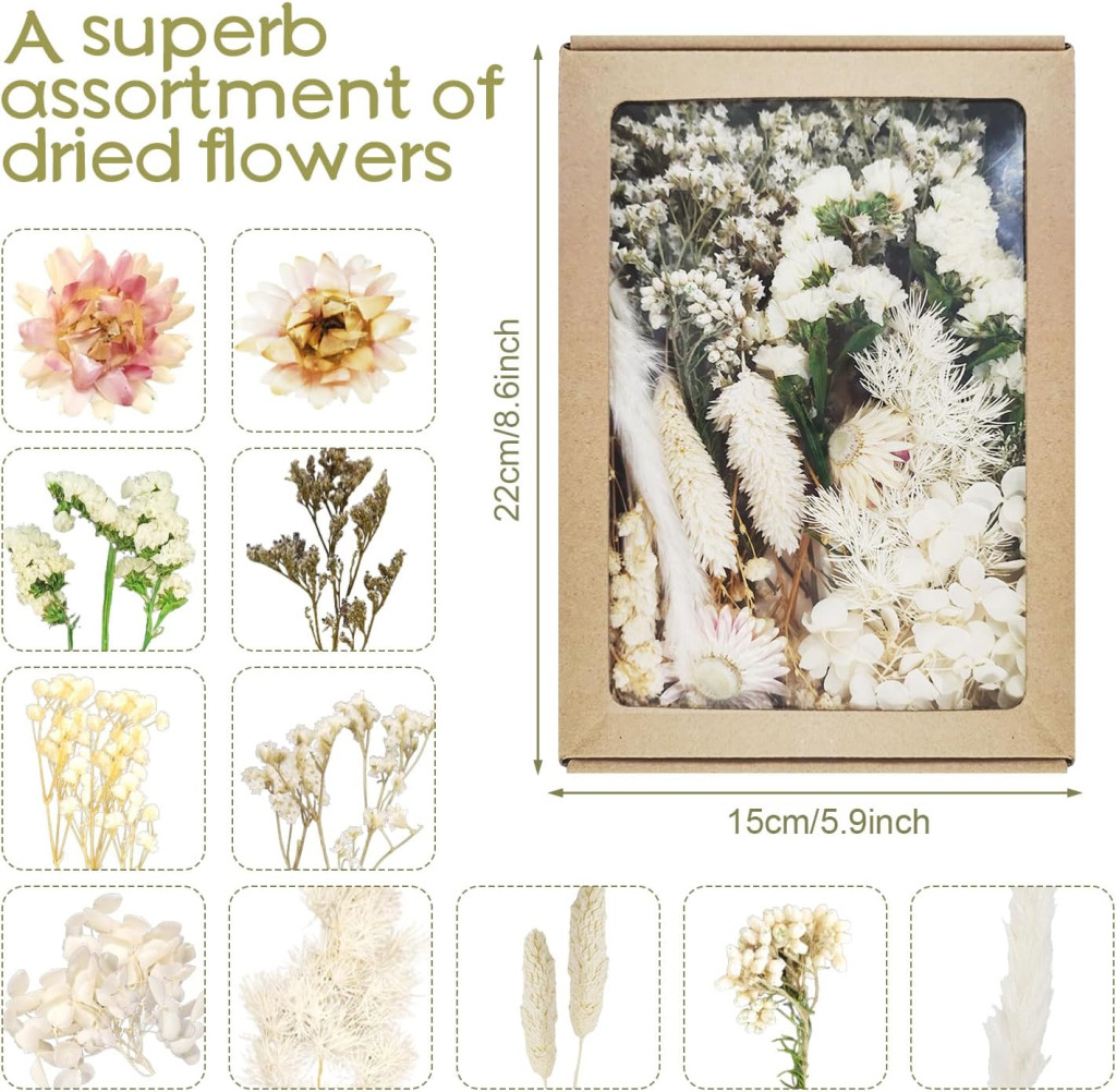 Dog's Booty Szárított Virágok Fehér DIY Dekorációhoz Gyertyához Scrapbooking
