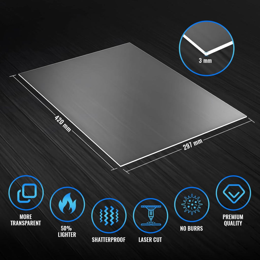 Langaelex Akril üveg lap 3mm A3 méret átlátszó lézervágáshoz és kézműves projektekhez