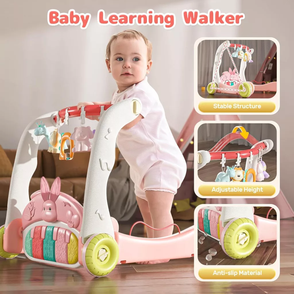 Multifunkcionalni dizajn koji se može koristiti u nekoliko faza razvoja Stabilna, sigurna funkcija hodalice s podesivim ručkama Glazbeni klavir sa svjetlom koji razvija glazbeni osjećaj i kognitivne sposobnosti Mekana, prozračna podloga za igru, koja pruža ugodno okruženje Odvojive, sigurne grickalice i igračke, koje stimuliraju osjetila Kotači s podesivom brzinom, koji se prilagođavaju različitim fazama učenja hodanja Žive boje i različite teksture, koje razvijaju bebinu percepciju Materijali koji se lako čiste, što je praktično u svakodnevnom životu Nedostaci: