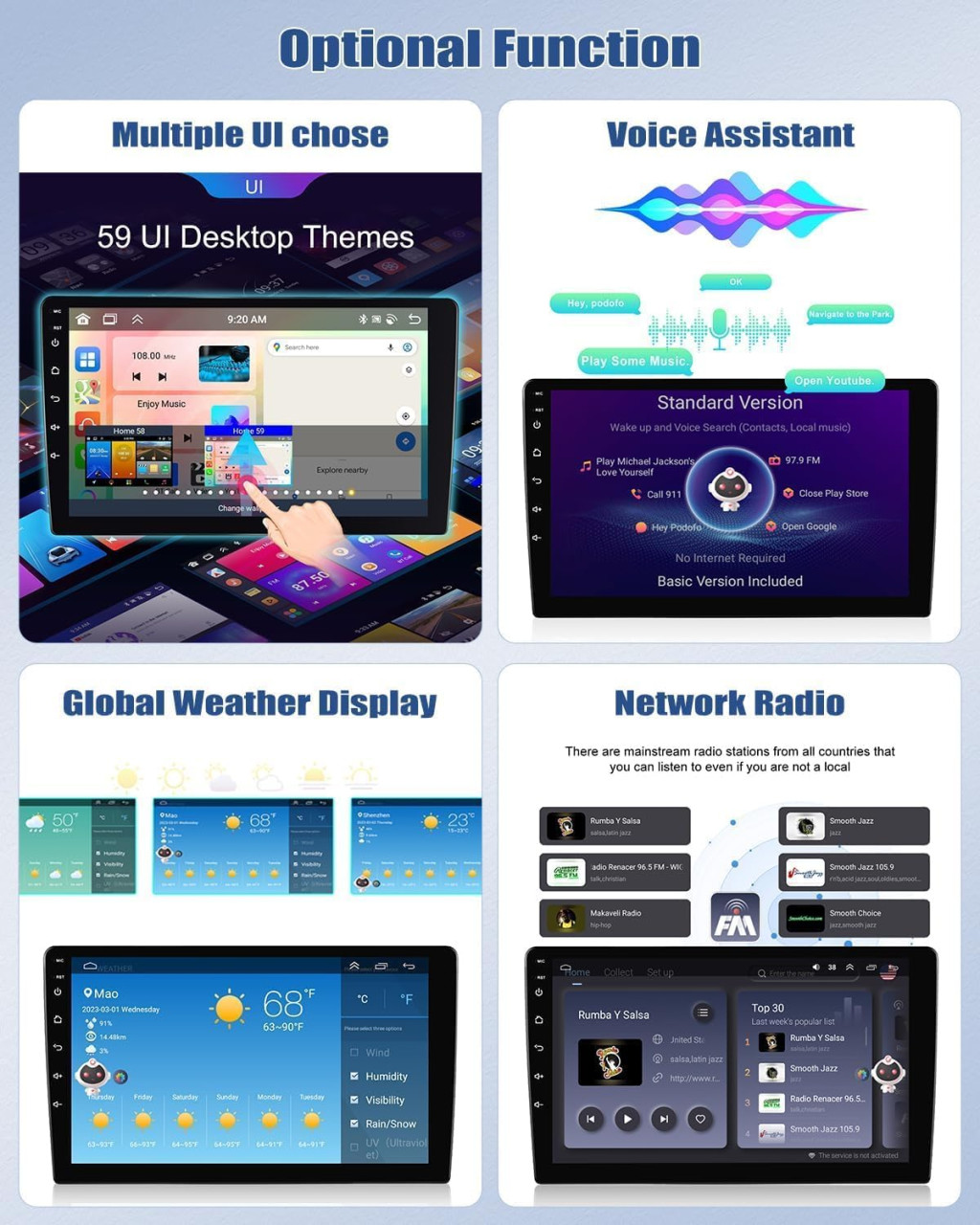 Autoradio podržava 12 jezika: španjolski, njemački, engleski, francuski, talijanski, portugalski, ruski, turski, vijetnamski, hebrejski, poljski, kineski i arapski. To osigurava da korisnici bilo koje nacionalnosti mogu lako koristiti uređaj.