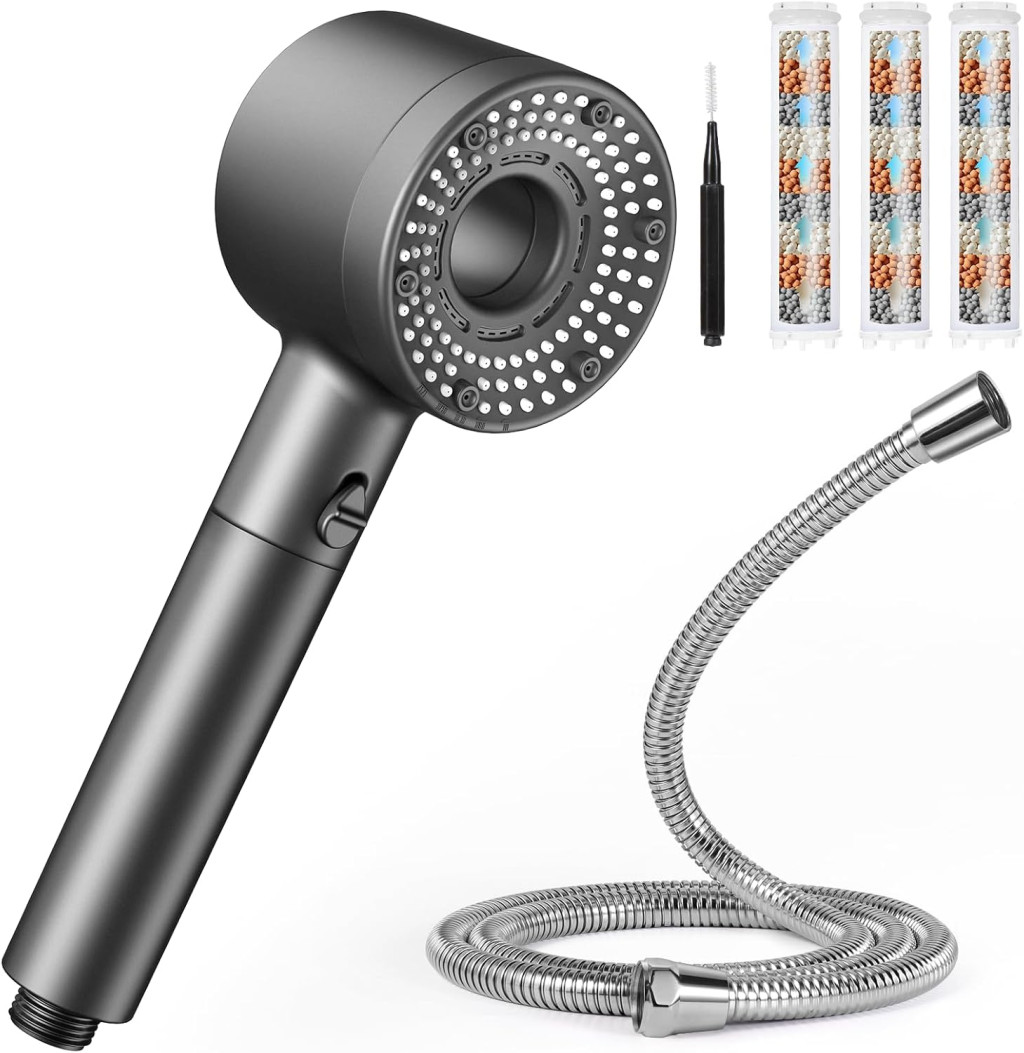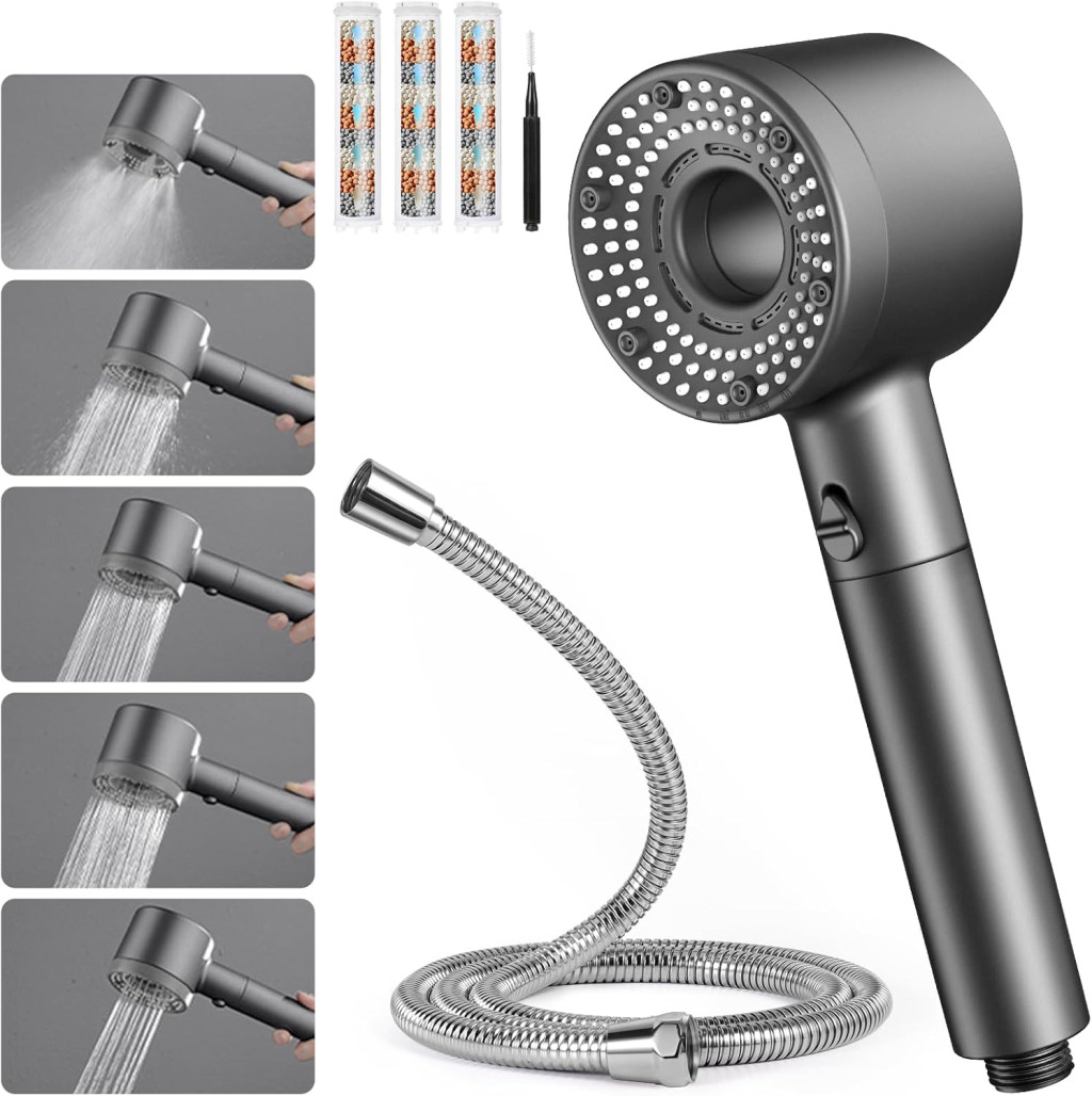 Blendura zuhanyfej 1,5 m csővel, 5 funkciós esőzuhanyfej vízspórlóval és vízkőmentesítő szűrővel