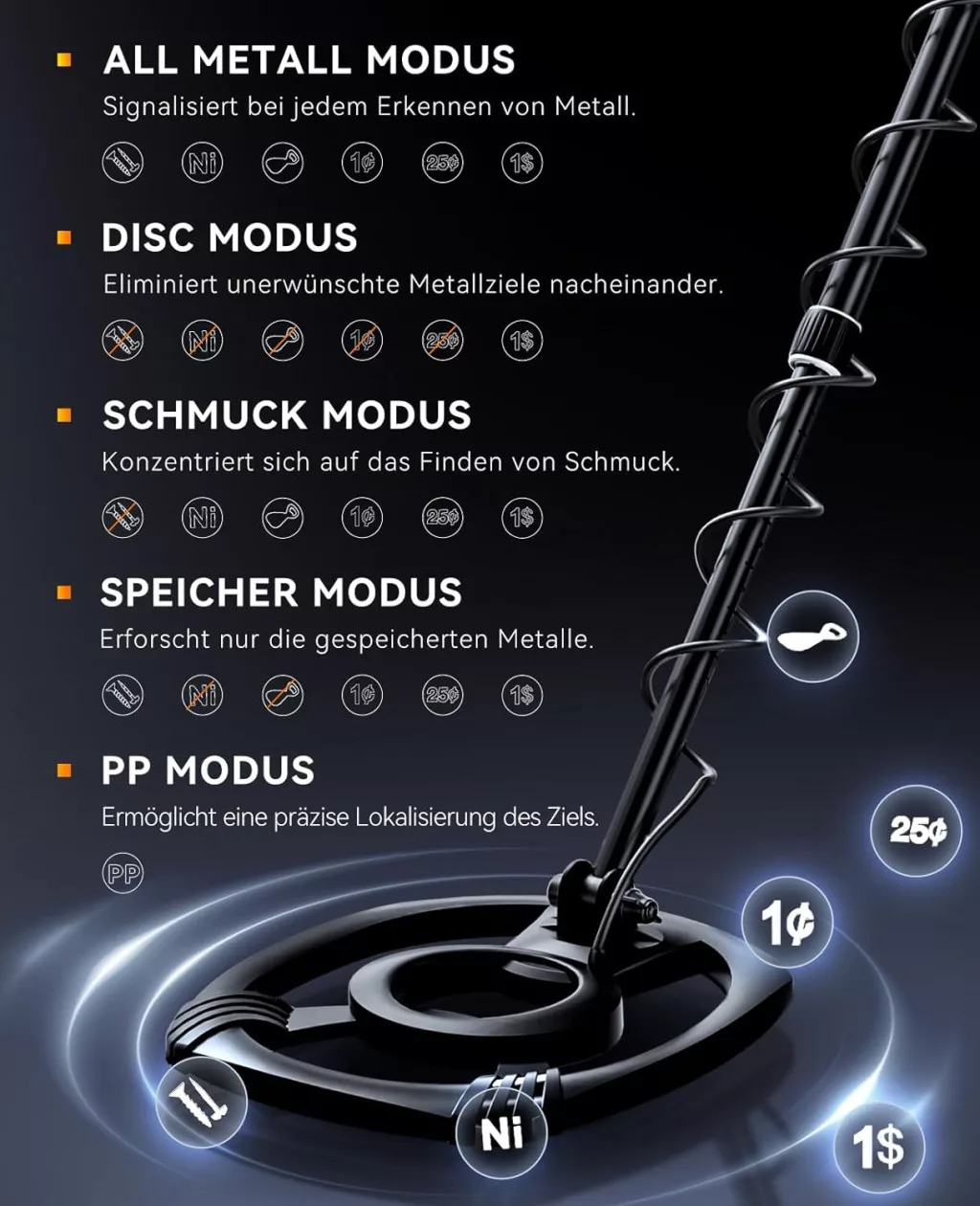 Ovaj set detektora metala ima brojne inovativne značajke koje ga razlikuju od ostalih proizvoda na tržištu: