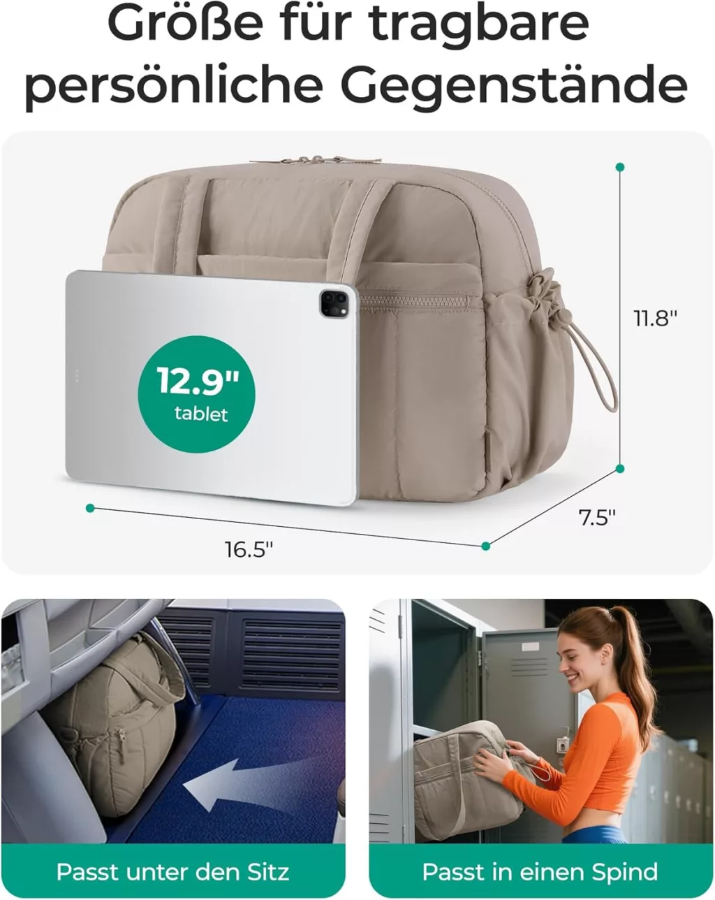 BAGSMART ženska sportska torba izvrstan je izbor za one koji traže pouzdanu, svestranu i elegantnu putnu torbu. Vodootporan materijal, snažni patentni zatvarači i udobne mogućnosti nošenja osiguravaju da će vas ova torba služiti dugo vremena. Zahvaljujući veličini prema IATA standardu, može se koristiti i na letovima, dok je kapacitet od 24 litre dovoljan za vikend putovanja i treninge u teretani. Elegantna boja devine dlake i moderan dizajn znače da nije samo praktična, već i lijepa.