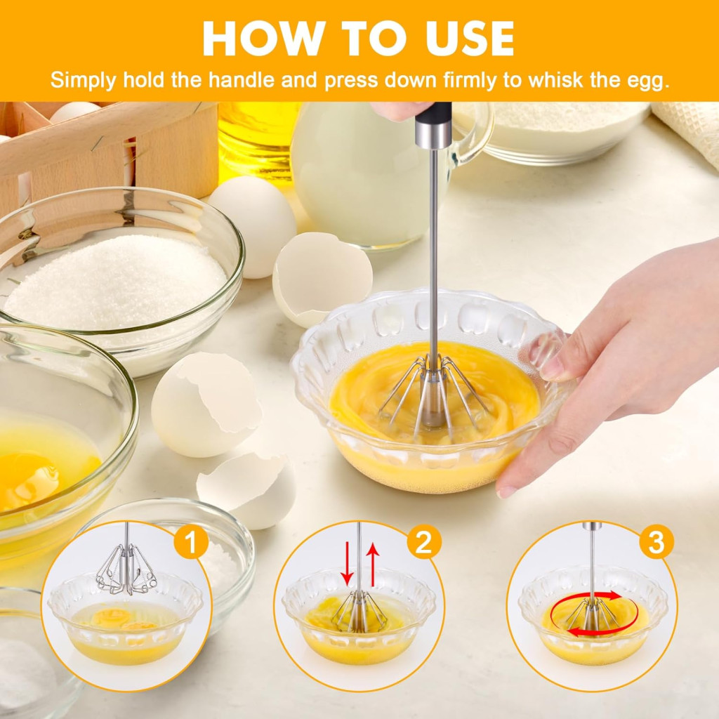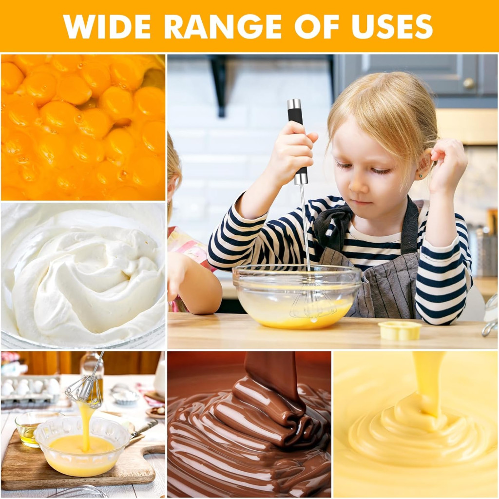 Nezamjenjiv pomoćnik moderne kuhinje je stigao! Kssvzz poluautomatska mutilica revolucionira iskustvo pečenja i kuhanja, jer jednim pritiskom na gumb zamjenjuje zamorno ručno miješanje. Ovaj 26 cm dug, crni kuhinjski alat modernog stila stvara savršenu ravnotežu između fleksibilnosti tradicionalnih ručnih mutilica i učinkovitosti električnih miksera - sve bez izvora napajanja! Mutilica izrađena od visokokvalitetnog nehrđajućeg čelika 304 nije samo izdržljiva, već ima i ugrađeni separator žumanjka, čime objedinjuje više funkcija u jednom praktičnom alatu. Bilo da tučete jaja, miješate tijesto ili pripremate umak, ova multifunkcionalna mutilica bit će vaš pouzdan partner u svakom kuhinjskom zadatku.