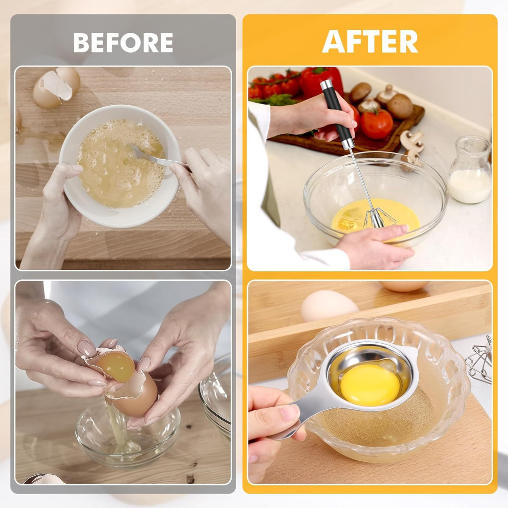 - Ugrađeni separator žumanjka: Pomoću separatora koji se nalazi u setu, možete odvojiti bjelanjak od žumanjka u nekoliko sekundi.