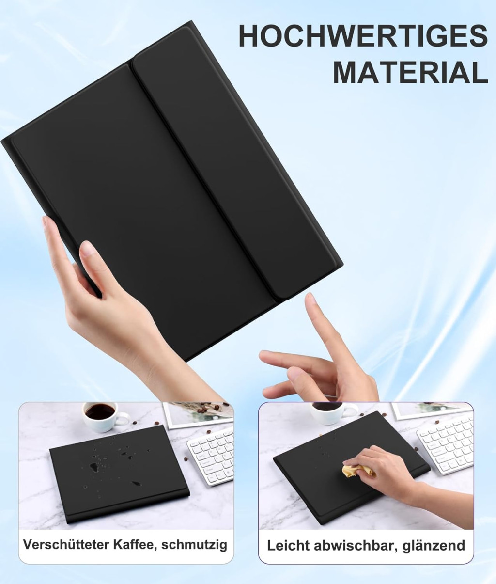 A Vobafe tok modern és professzionális megjelenésű, amely tökéletesen illeszkedik az iPad Air-hez. Az ergonomikus billentyűzet és az extra nagy érintőpad hosszú munkamenetekhez is kényelmes használatot biztosít. A 7 színű RGB háttérvilágítás nem csak praktikus, hanem stílusos is, lehetővé téve a személyre szabott megjelenést. Az eltávolítható billentyűzet rugalmas használatot tesz lehetővé, így használhatod a tokat önmagában, ha szükséges.