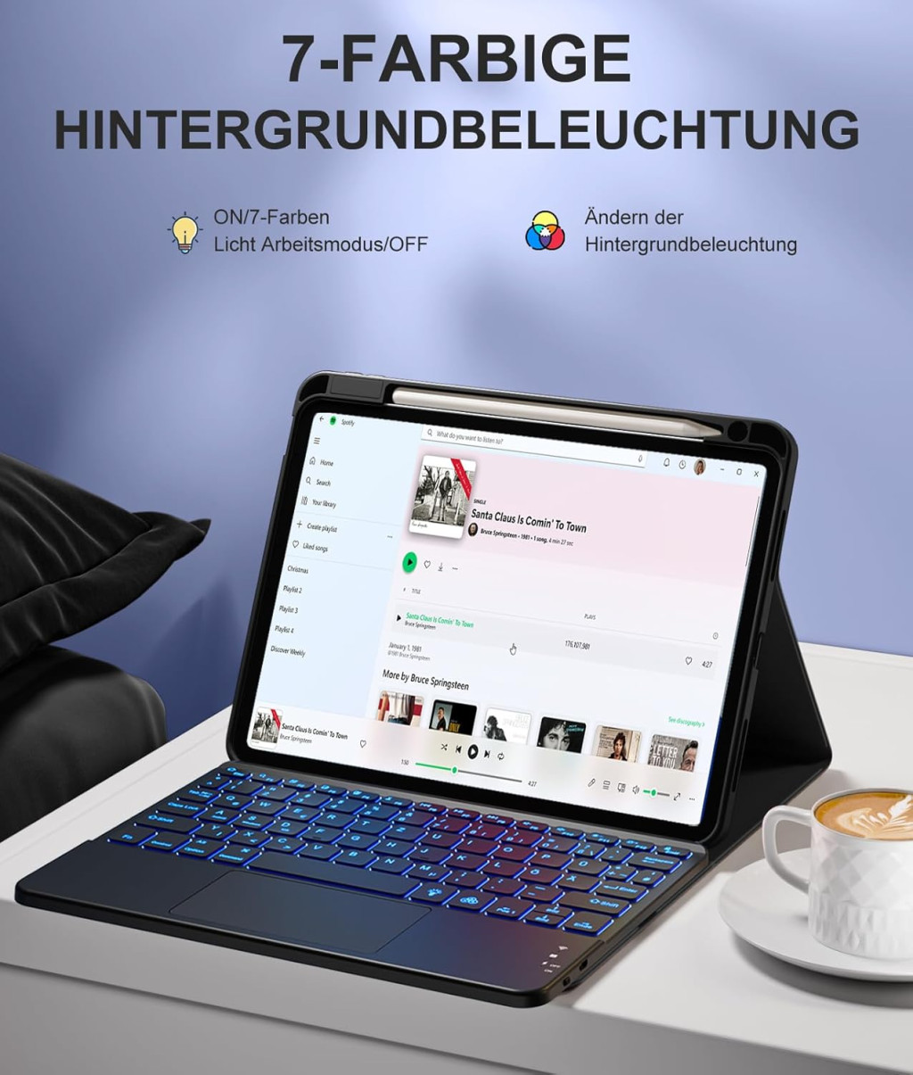 Vobafe futrola ima moderan i profesionalan izgled koji se savršeno uklapa s iPad Air-om. Ergonomski dizajnirana tipkovnica i iznimno velika dodirna podloga osiguravaju udobno korištenje čak i tijekom dugih radnih sesija. 7 boja RGB pozadinskog osvjetljenja nije samo praktično, već i stilski, omogućujući personalizirani izgled. Odvojiva tipkovnica omogućuje fleksibilnu upotrebu, tako da možete koristiti futrolu samostalno, ako je potrebno.