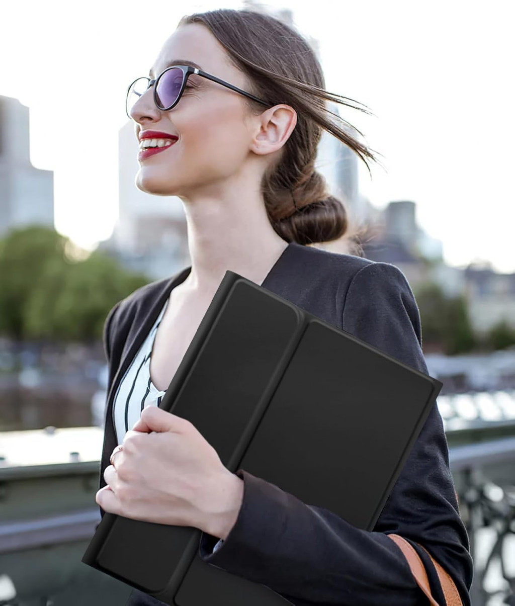 Vobafe futrola pruža visoku razinu zaštite za iPad. Mekani PU organski silikonski premaz je ugodan na dodir i otporan na prljavštinu, tako da dugo ostaje u novom stanju. TPU stražnja strana s uzorkom saća osigurava dobro odvođenje topline, sprječavajući pregrijavanje iPada. Struktura koja apsorbira udarce pruža zaštitu od padova i udaraca. Utori na dnu futrole omogućuju podešavanje kuta gledanja, dok istovremeno pružaju stabilnu potporu.