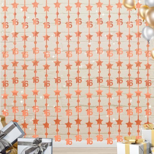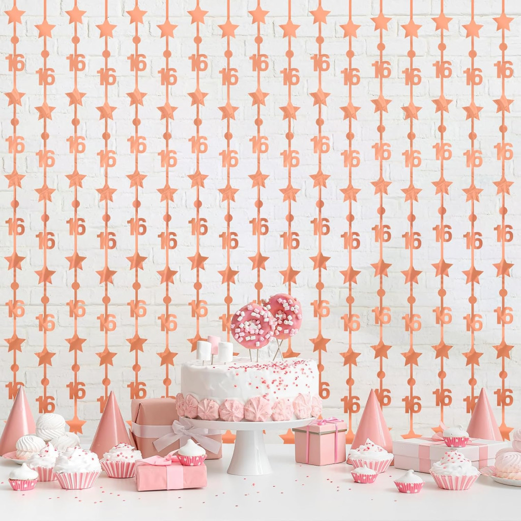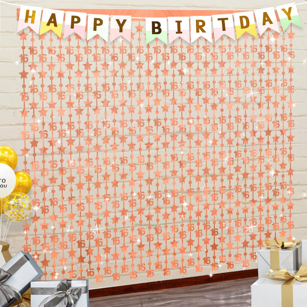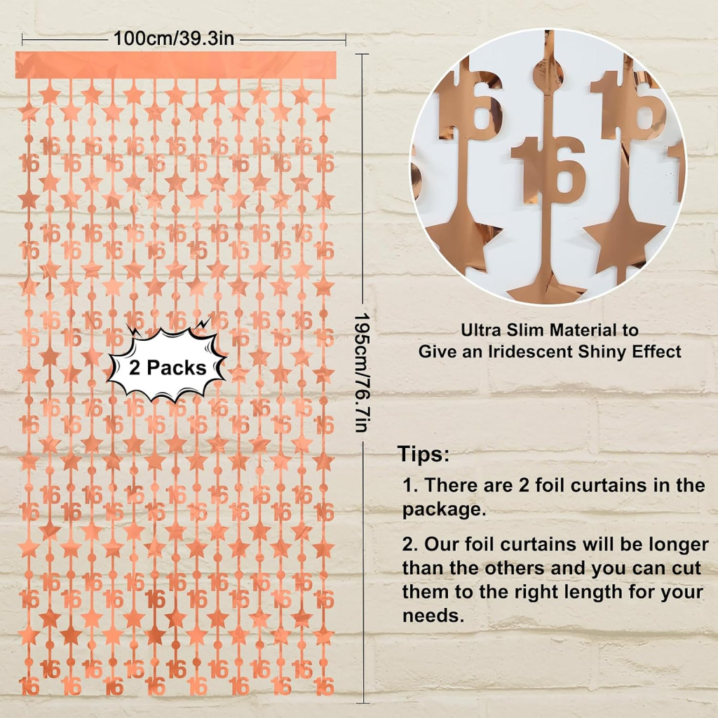 WenmthG Rozéarany 16-os Szülinapi Függöny Dekoráció - 2db Csillagos Fityegő Függöny 2M