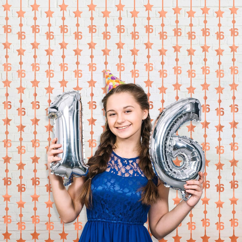 Rose Gold 16 Éves Szülinapi Dekoráció - Elegáns Fólia Függöny