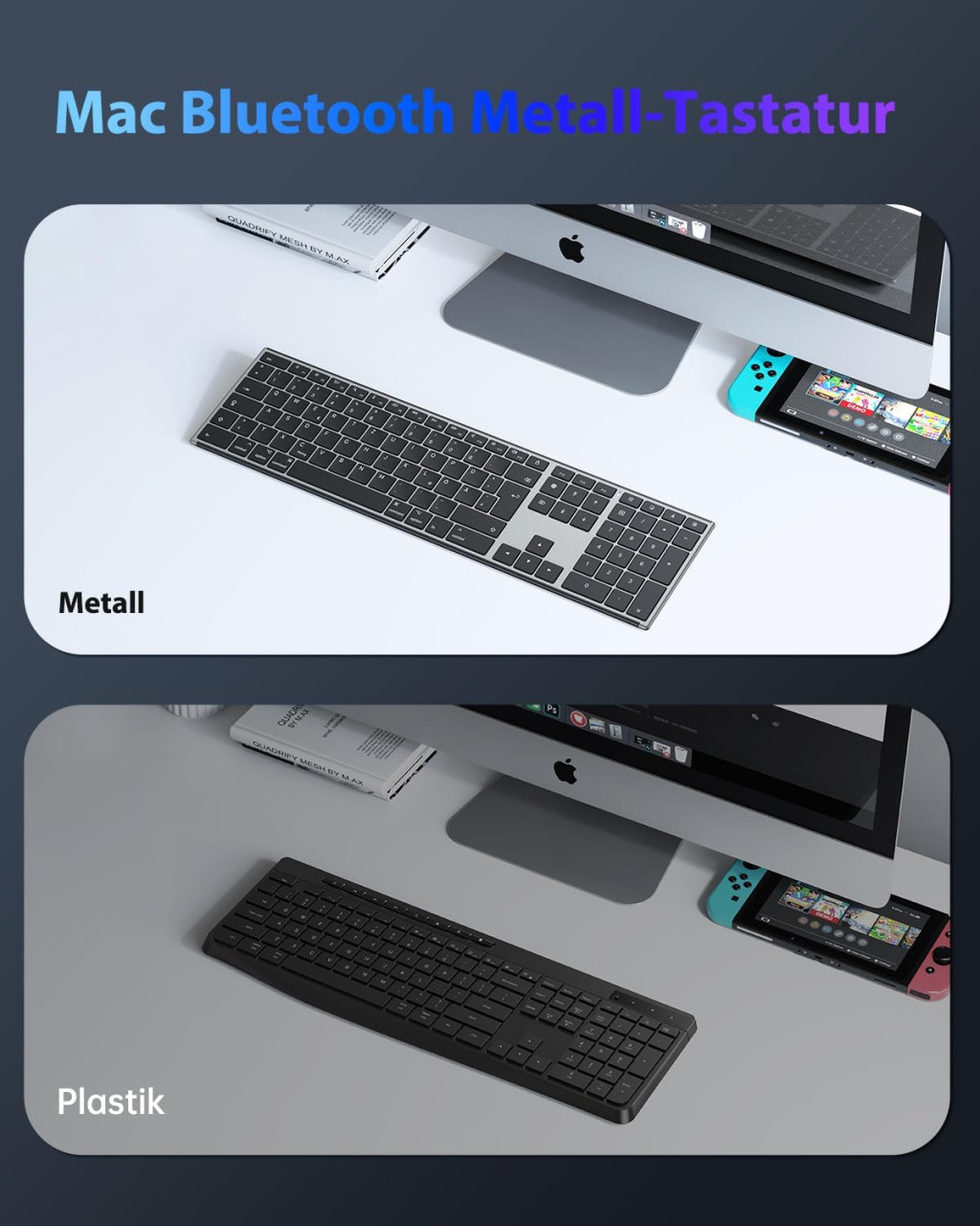 Az OMOTON Bluetooth billentyűzet a Mac felhasználók számára az ideális választás, akik prémium minőséget és professzionális megjelenést keresnek. A fém konstrukció nem csupán esztétikus, hanem garantálja a hosszú élettartamot és a stabilitást. Az ergonomikus kialakítás és csendes gépelés biztosítja a kényelmet a hosszú munkamenetekben.