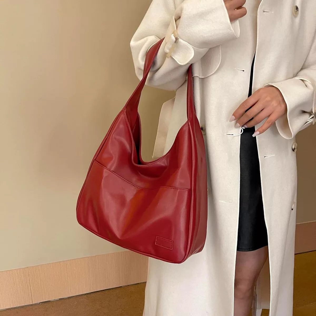 Ova velika hobo torba preko ramena savršen je izbor za modernu ženu koja traži stil i funkcionalnost. Torbu je dizajnirao CUNGGI, a izrađena je od veganske umjetne kože, koja je ekološki prihvatljiv i izdržljiv materijal. Sa svojim retro dizajnom, odiše bezvremenskom elegancijom, dok praktične dimenzije (32 x 24,99 x 11,99 cm) osiguravaju da u nju stanu sve potrebne stvari. Njena mala težina (290 g) čini je idealnom za svakodnevnu upotrebu, putovanja i posao.