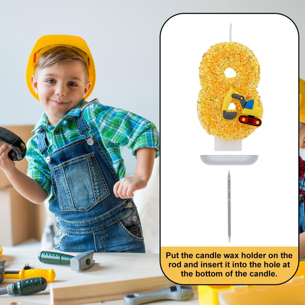 Dizajn s građevinskom temom posebno je popularan na rođendanskim proslavama za dječake, ali se može koristiti na bilo kojoj proslavi gdje je potrebna mala doza dodatne čarolije. Svijeća dolazi s postoljem i štapićem koji osiguravaju stabilan položaj na torti.