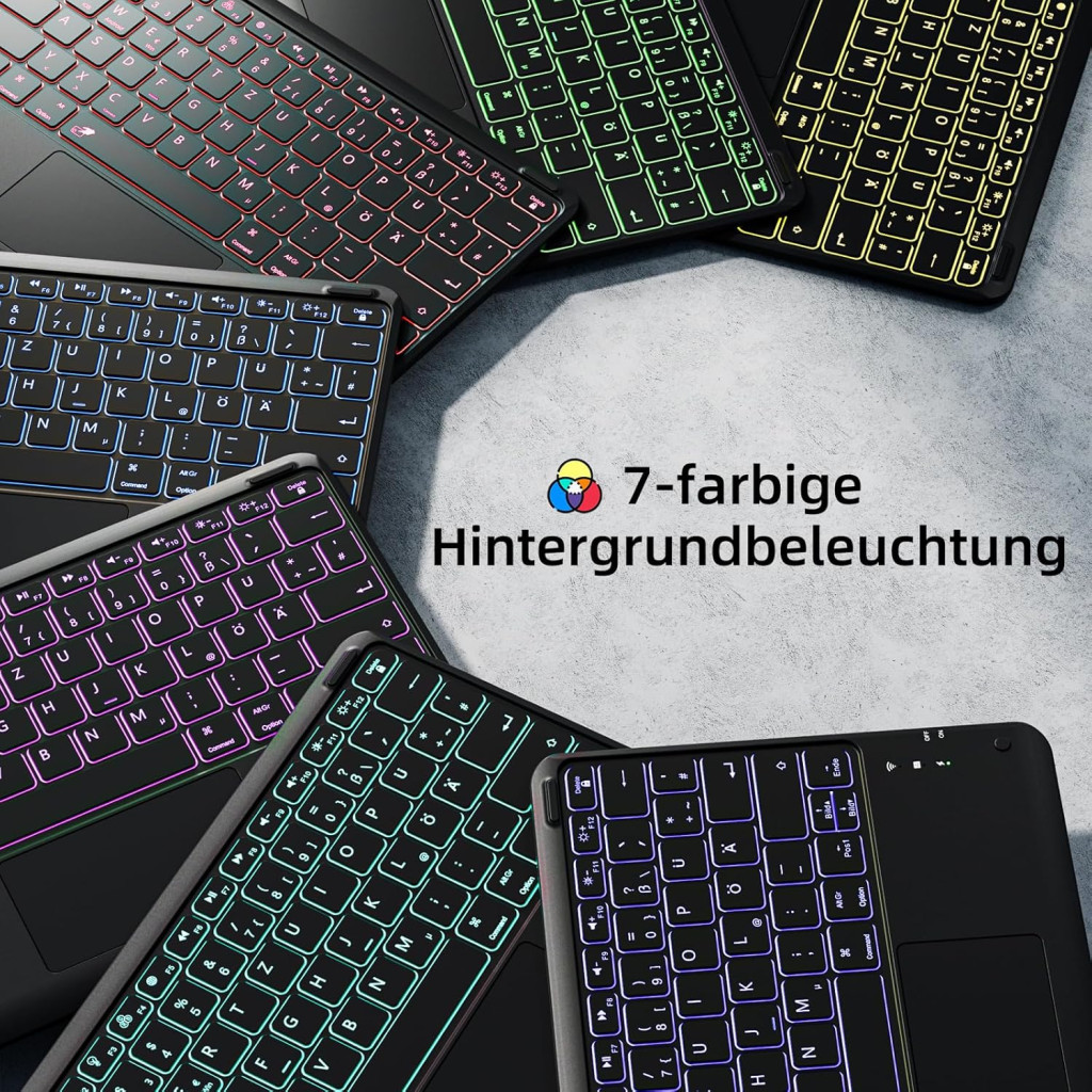 Vobafe iPad Air 13 és iPad Pro 12.9 Billentyűzet Tok - QWERTZ Billentyűzet, 7 Színű LED