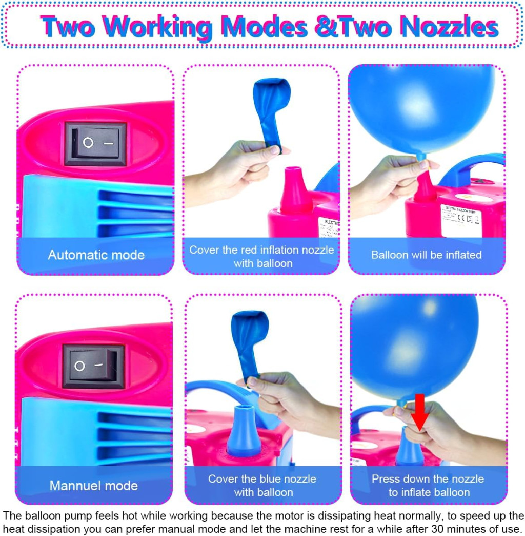 A YEPVIE elektromos léggömb pumpa rendkívül sokoldalú és kompatibilis számos típusú léggömbbel. A dupla fúvóka rendszer lehetővé teszi, hogy különböző méretű léggömböket fújj fel ugyanazzal az eszközzel. A kétféle felfújási mód – automatikus és kézi – biztosítja, hogy teljes kontrollt gyakorolhass a felfújási folyamat felett.