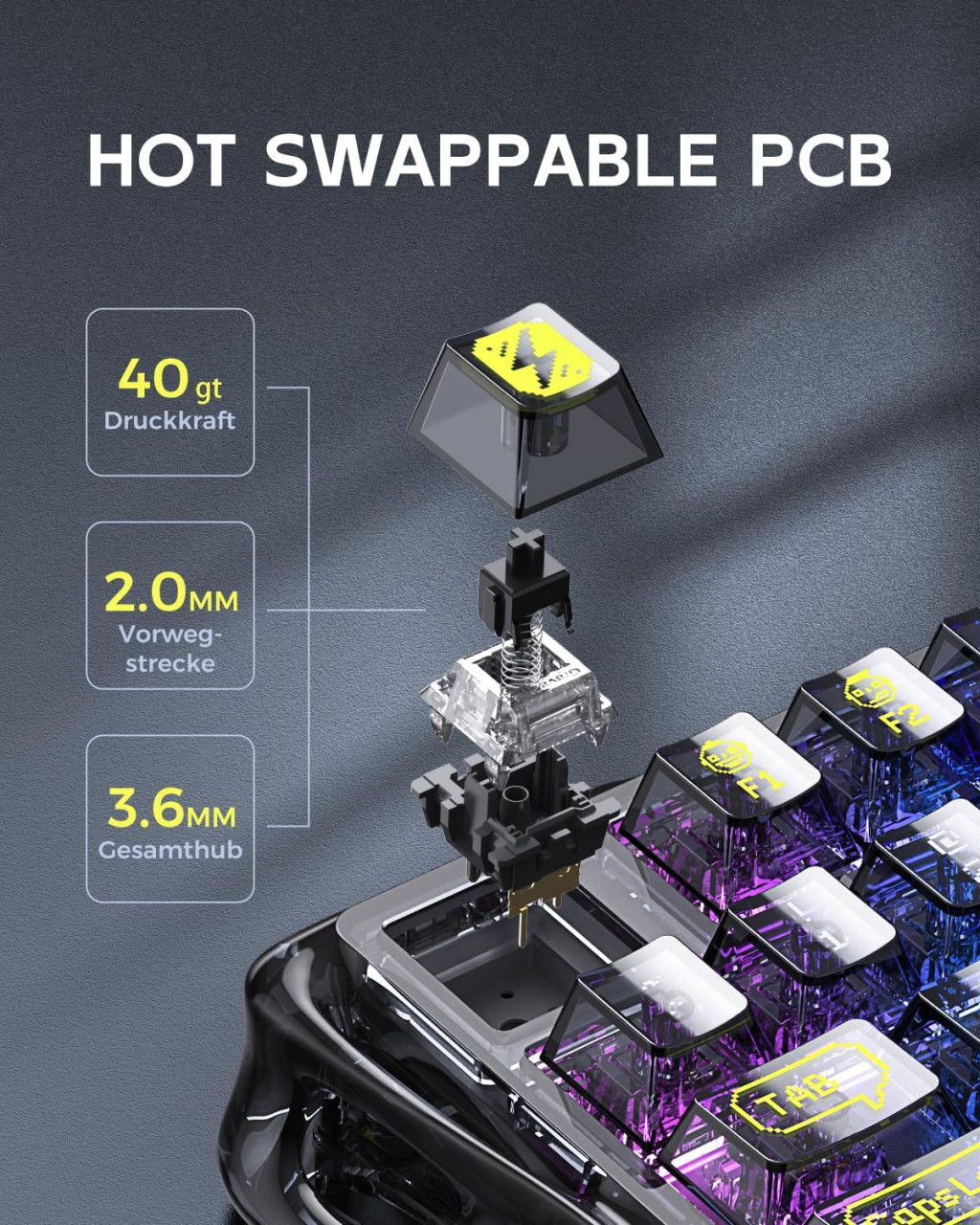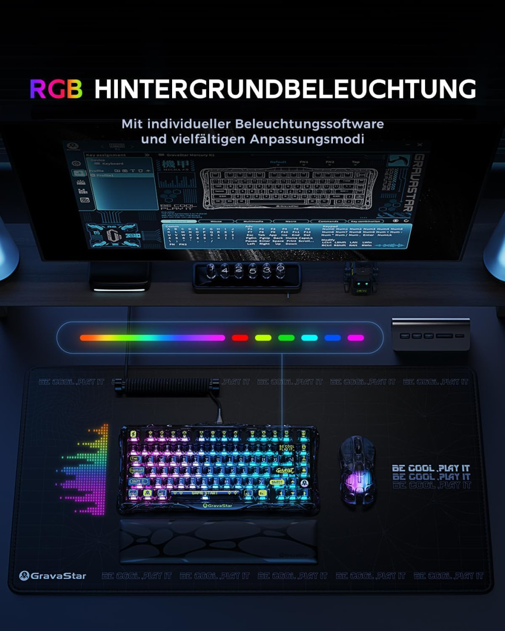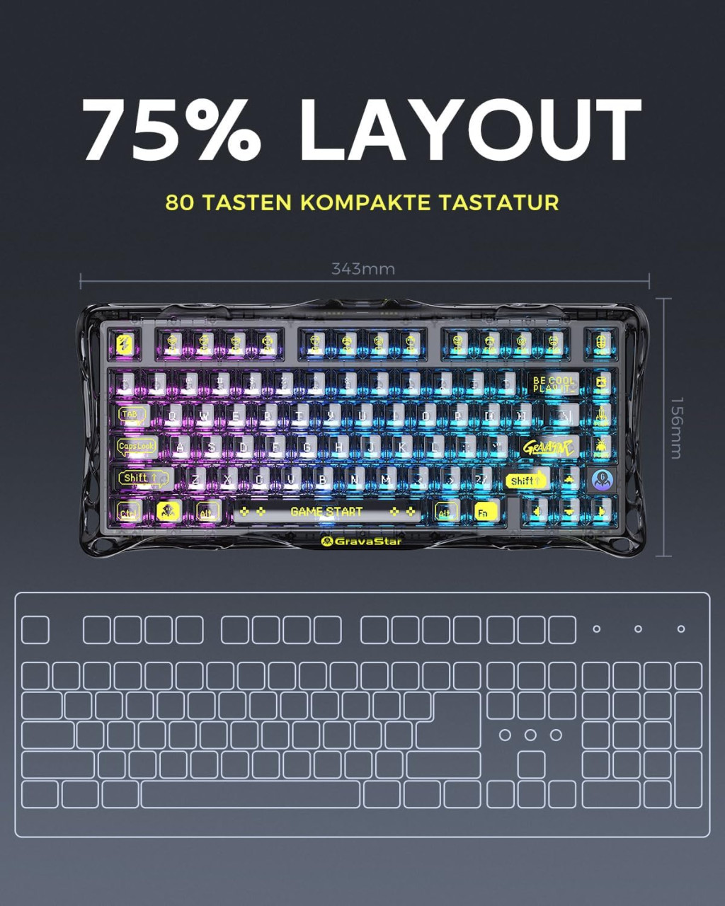 GravaStar Mercury K1 Lite 75% Wireless Gaming Billentyűzet RGB Háttérvilágítással