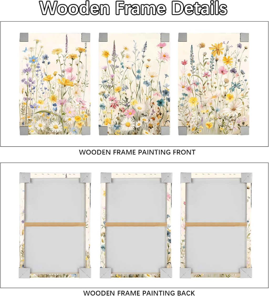 Ez a gyönyörű 3 részes vászon képsorozat a természet szépségét hozza el otthonodba. A vibráló százszorszép virágok és vadvirágok motívuma modern, mégis meghitt hangulatot teremt bármely szobában. A képek archív minőségű vászonra nyomtatva, élénk és tartós színekkel, amelyek nem halványulnak el az idő múlásával. A fa kerettel ellátott darabok azonnal felakaszthatók, így nem szükséges további előkészítés.