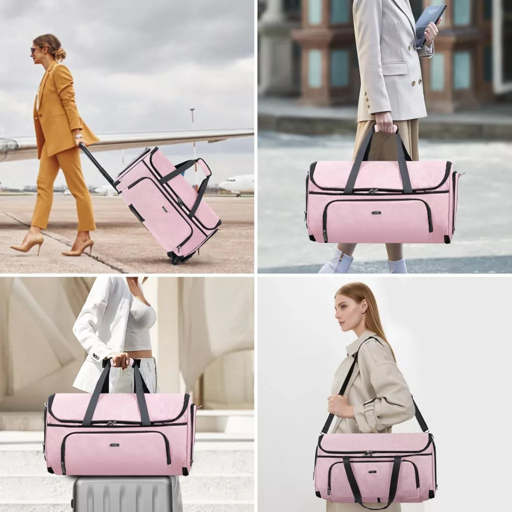 Lekespring putna torba s kotačićima 47L s pretincem za cipele, konvertibilna putna torba ružičasta