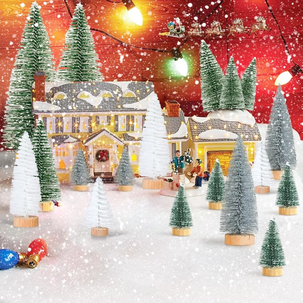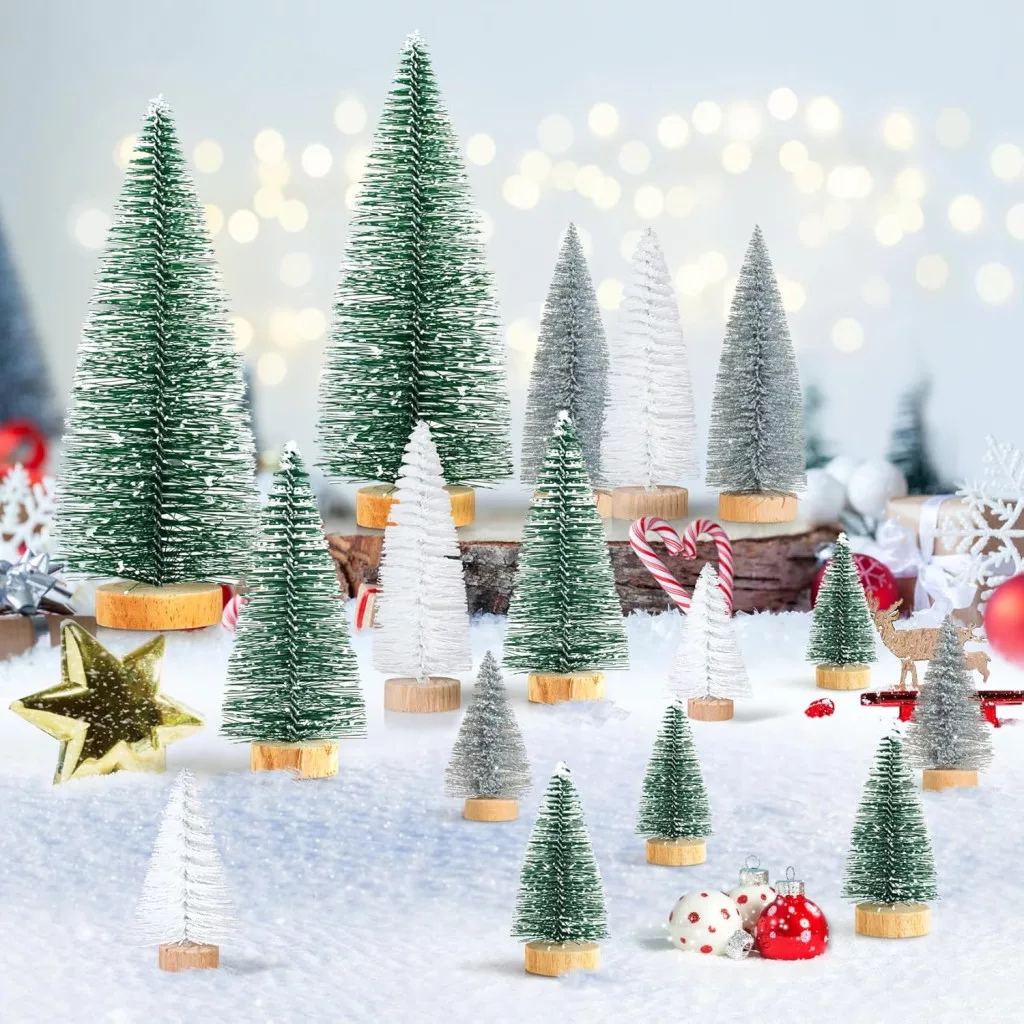 A Kieswan 16 darabos mini karácsonyfa szett tökéletes asztali és ablakdekorációhoz: