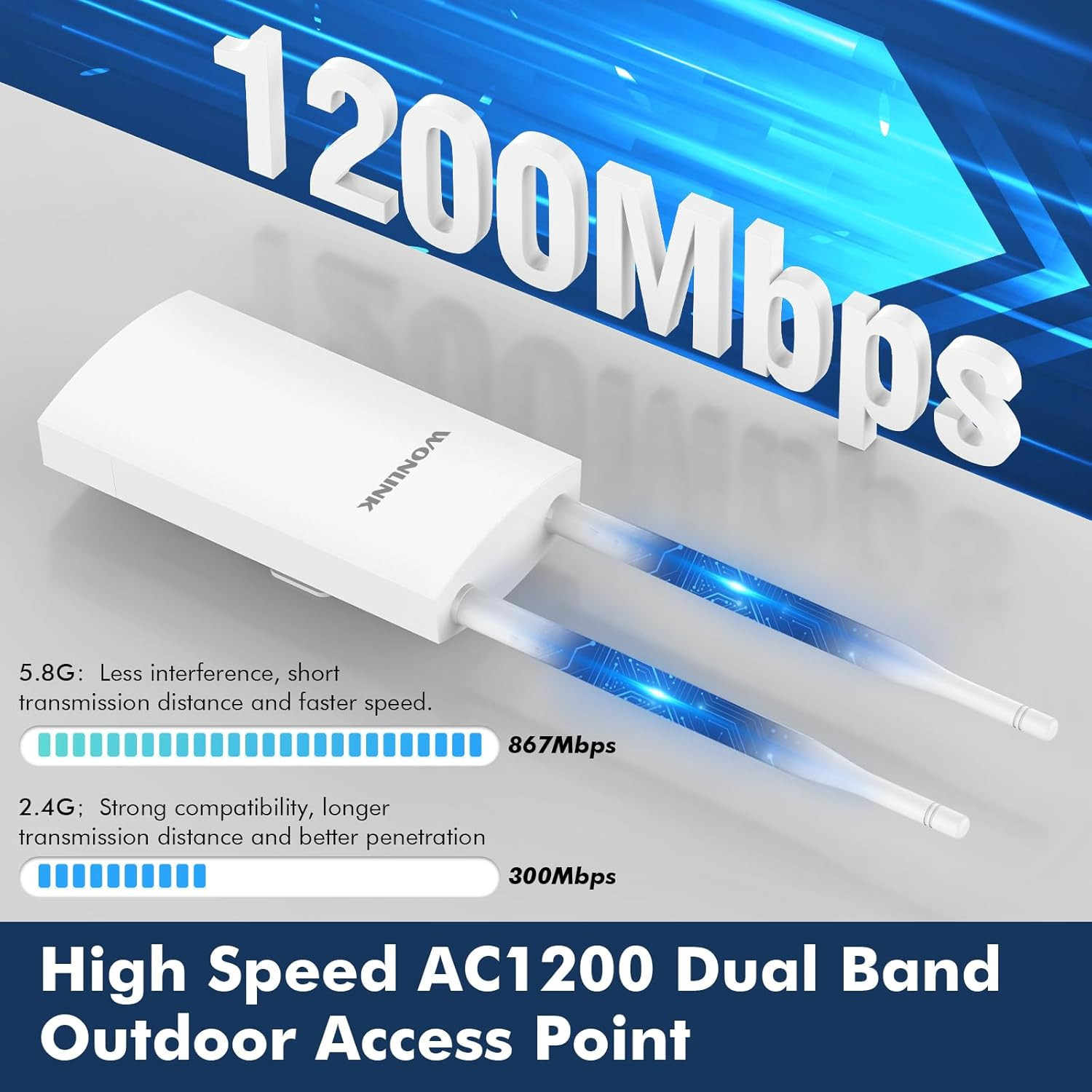 WONLINK AC1200 Outdoor WLAN Access Point 7202-2 WiFi Erősítő