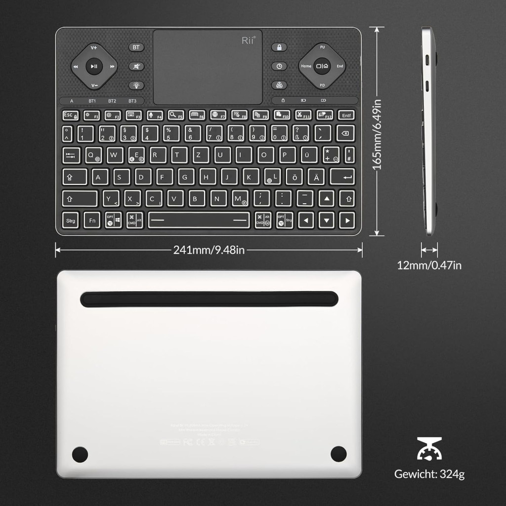 Rii Bluetooth Tipkovnica s Touchpadom - 12 Boja Pozadinskog Osvjetljenja