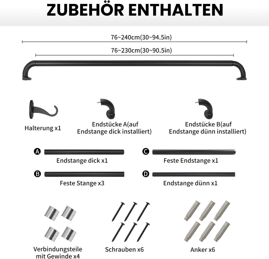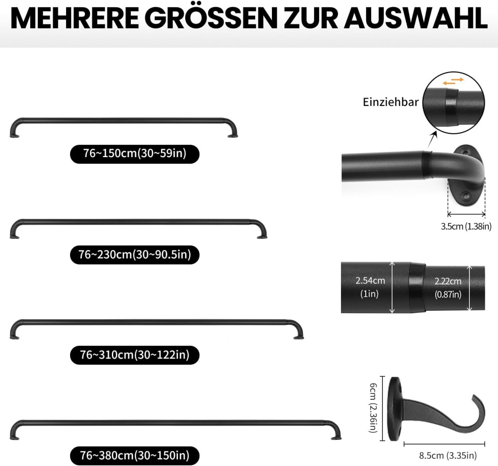 - Állítható Hosszúság: 76 cm-ről 230 cm-re nyújtható, így tökéletesen illeszkedik az ablakokhoz. Az egyik vég teleszkóposan állítható, elkerülve a mérési hibákat.