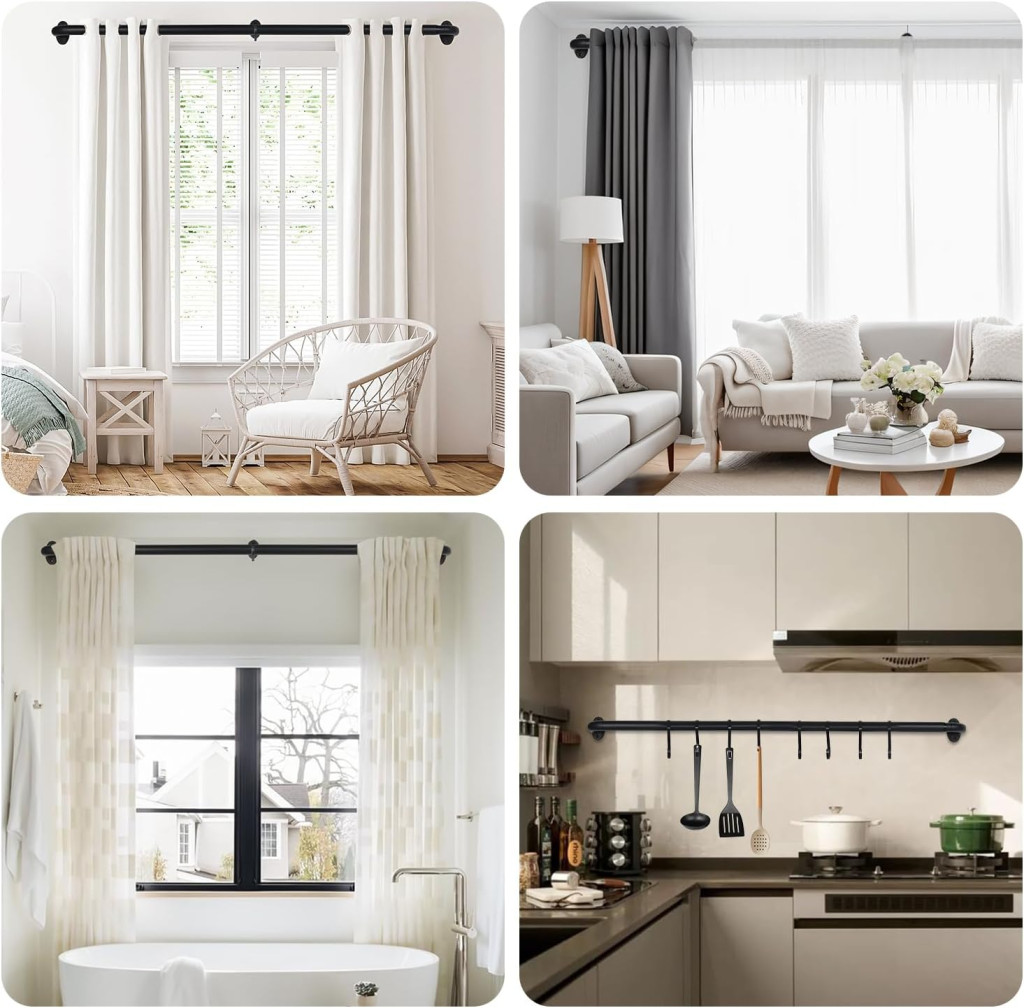 - 25 mm Átmérőjű Rúd: Az 1 hüvelykes (25 mm) átmérőjű rúd stabil alapot biztosít még a nehéz függönyökhöz és szövetekhez is.
