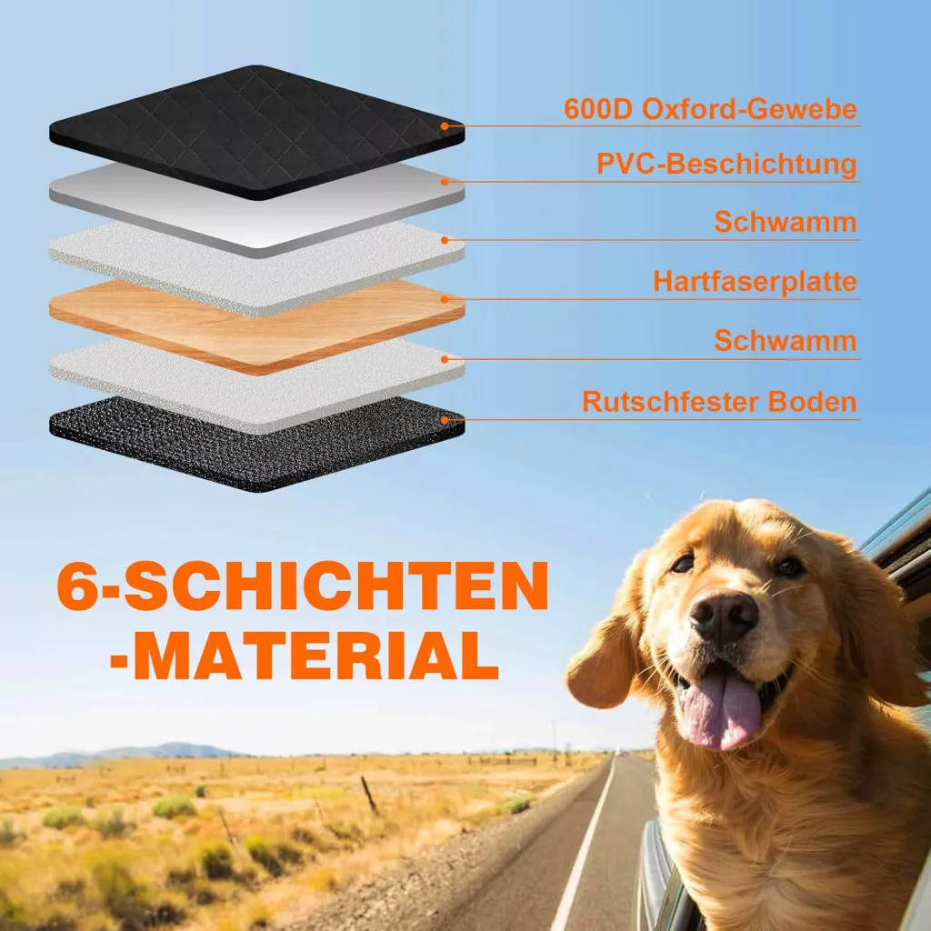 A 150 kg teherbírású, vízálló és karcálló kutyatakaró univerzális kialakításának köszönhetően az autók, SUV-k és kisteherautók 95%-ába illeszkedik, így ideális választás családi kirándulásokhoz vagy mindennapi utazásokhoz. A speciális 6 rétegű anyagszerkezet és a csúszásgátló gumipöttyök garantálják a maximális biztonságot még gyors tempójú utazások során is.