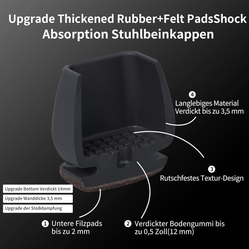 A MAYZOLOP szék lábvédő szett a modern otthonok és irodák ideális megoldása, amely hatékonyan védi a kemény padlókat a karcolások és kopások ellen. Ez a 16 darabos készlet speciálisan tervezett négyzet alakú szék lábakhoz, 22-27 mm átmérővel. Az integrált szürke filc párnázat biztosítja a maximális padlóvédelem és zajcsökkentés, miközben az elastikus termoplasztikus anyag garantálja a biztos rögzítést.