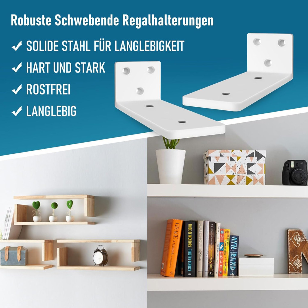 YFCVIP 25 cm Polc Tartó Konzol 2 db Fehér, 75 kg Terhelhetőség, Erős L Konzol Csavarokkal