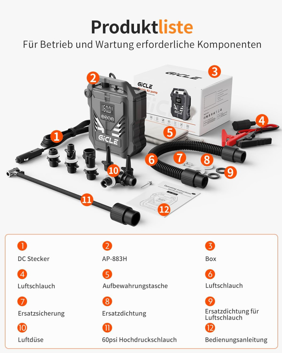 Model 883L proizvođača Gicle najbolji je omjer cijene i kvalitete na tržištu. Ergonomski rukohvat osigurava udobnu uporabu, dok robusna konstrukcija jamči dugi vijek trajanja. Univerzalni adapteri kompatibilni su s većinom ventila za napuhavanje paddleboardova, što je čini prikladnom za gotovo sve vrste uporabe.