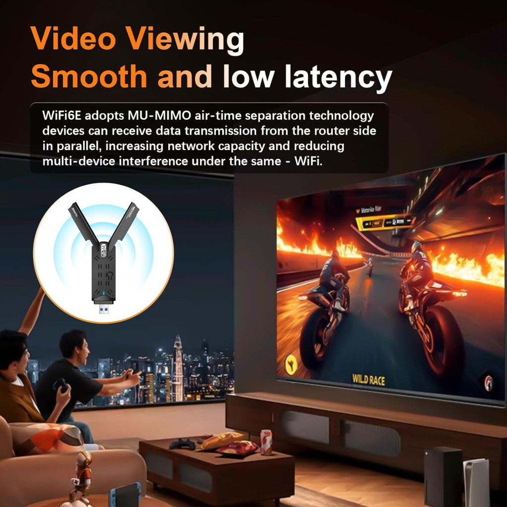 Ez az adapter ideális választás online játékosok számára, akik alacsony ping és stabil kapcsolatot igényelnek. A 160 MHz sávszélesség és a WiFi 6E technológia garantálja a zökkenőmentes játékélményt, még több eszköz egyidejű használata esetén is.