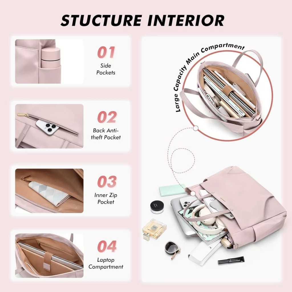 GOLF SUPAGS 15,6" Torba za Laptop Ženska Torba za Rame Posao Putovanje Siva-Roza