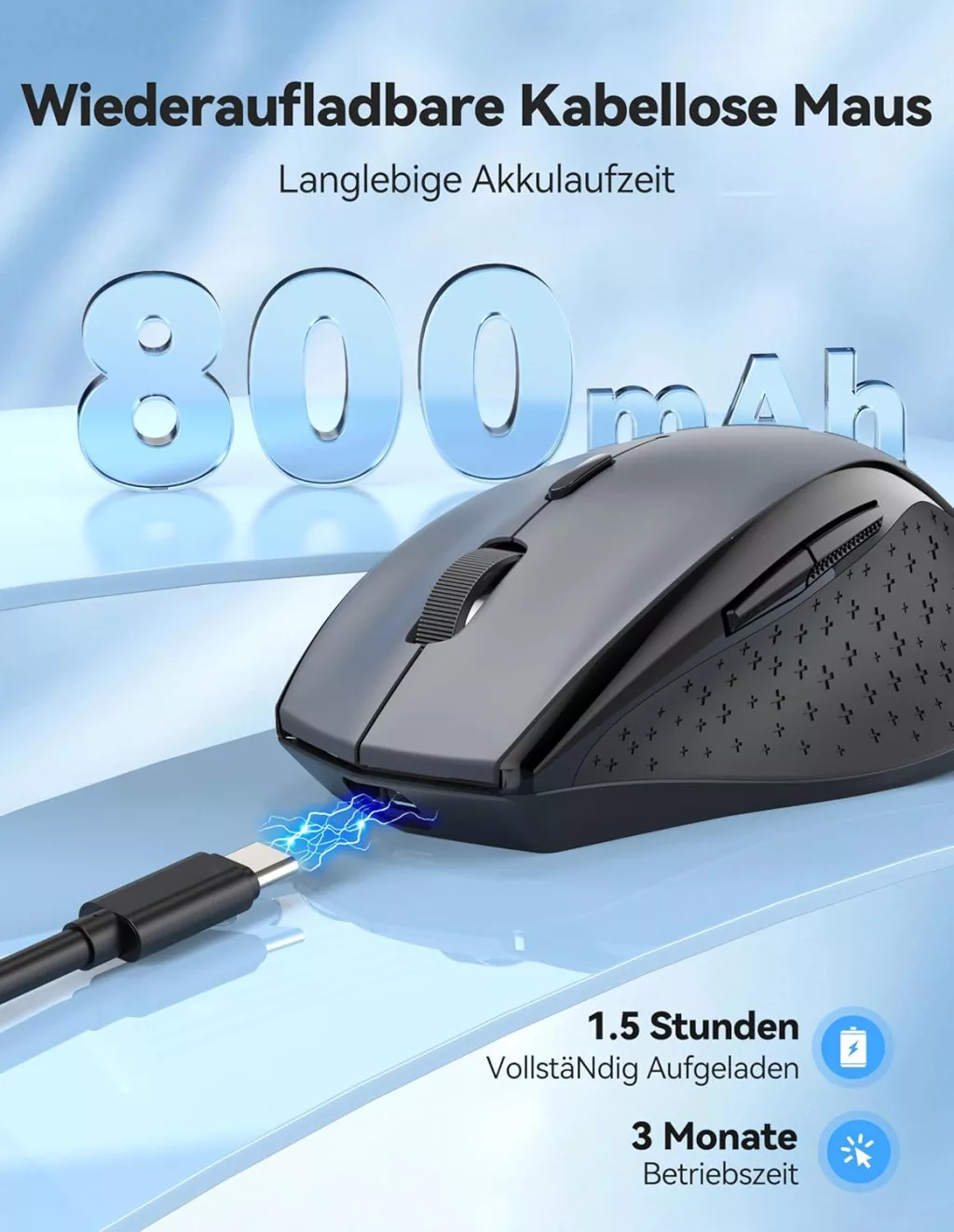 TECKNET PRO Vezeték nélküli egér 6400 DPI, ergonomikus, 6 gomb, szürke