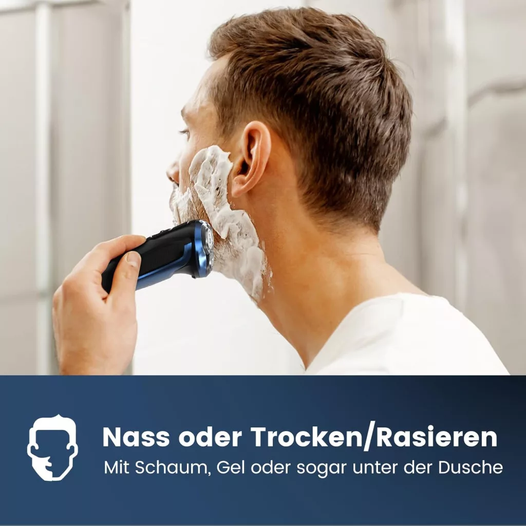 - IPX7 Vízálló Technológia: Nedves és száraz borotválkozásra egyaránt alkalmas. Használható borotválkozási habbal vagy géllel, valamint zuhany alatt is.