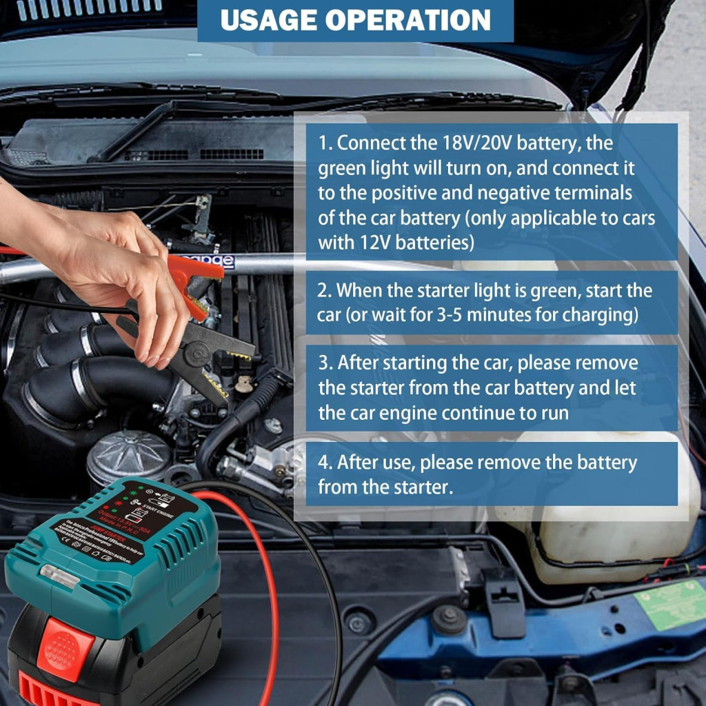 Ez a professzionális jump starter adapter egy innovatív megoldás azoknak, akik Bosch 18V GBA akkumulátorokat használnak. Az eszköz lehetővé teszi, hogy az 18V-os akkumulátort 12V-os járművek indítására használja fel, így egy sokoldalú és praktikus segédeszköz válik az autósok számára. Az adapter speciálisan tervezve lett autók, motorkerékpárok és SUV-ok számára, amelyek akár 3,5 literes dízel motorral is rendelkezhetnek.