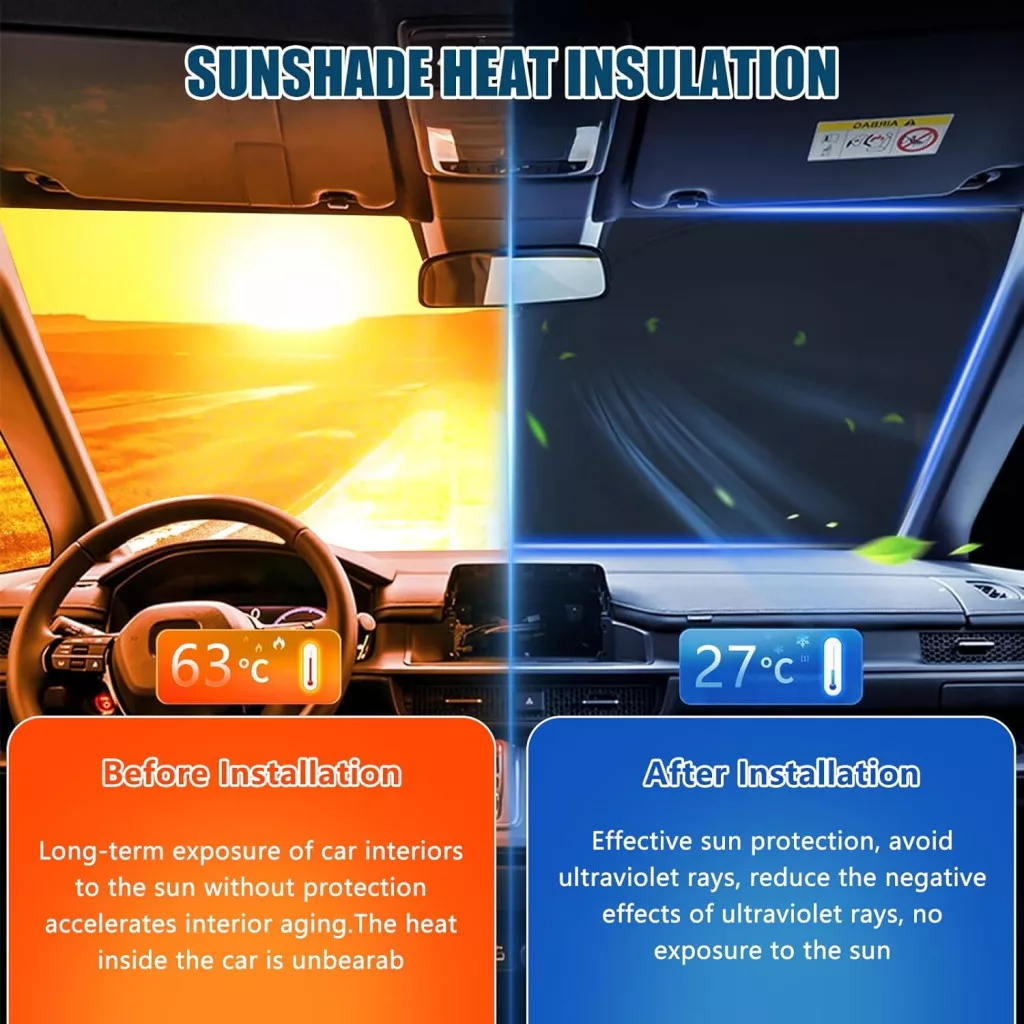 Ez a napvédő szett ideális megoldás azoknak, akik szeretnék megvédeni autójuk belsejét az UV-sugarak okozta károsodástól. Nyáron az ezüst oldal visszaveri a napsugarakat, amely jelentősen csökkenti az autó belsejének hőmérsékletét, így kevesebb energiát igényel a légkondicionálás. Télen a fekete oldal megtartja a hőt, csökkentve a páralecsapódást és megtartva a kényelmes belső hőmérsékletet. Az autó műanyag alkatrészei, az irányítópult és az ülések hosszabb ideig megőrzik eredeti színüket és állapotukat.