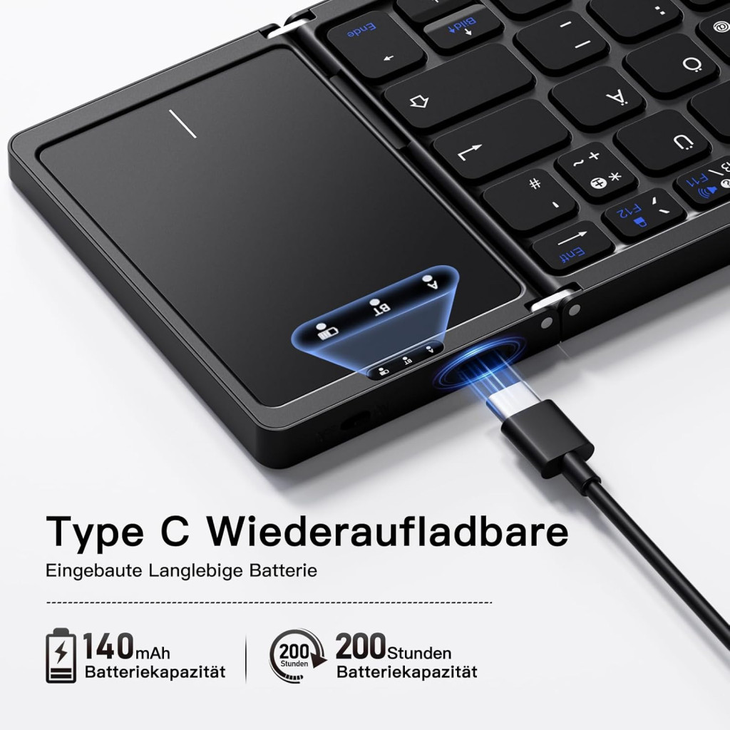 Vobafe Bluetooth Összecsukható Billentyűzet Érintőpaddal - Hordozható Vezeték Nélküli Billentyűzet Termék Áttekintés