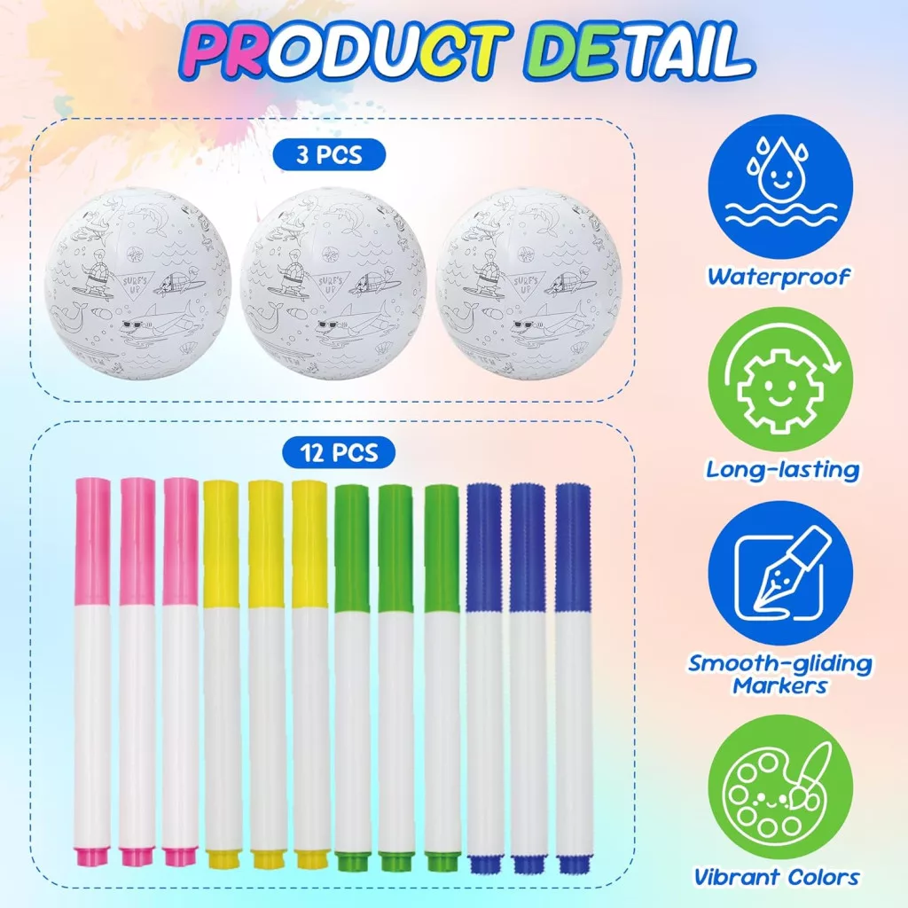 Vízálló tulajdonságok: Mind a labda, mind a filctollak vízálló, így tökéletes a medencében és a tengerben való használatra.