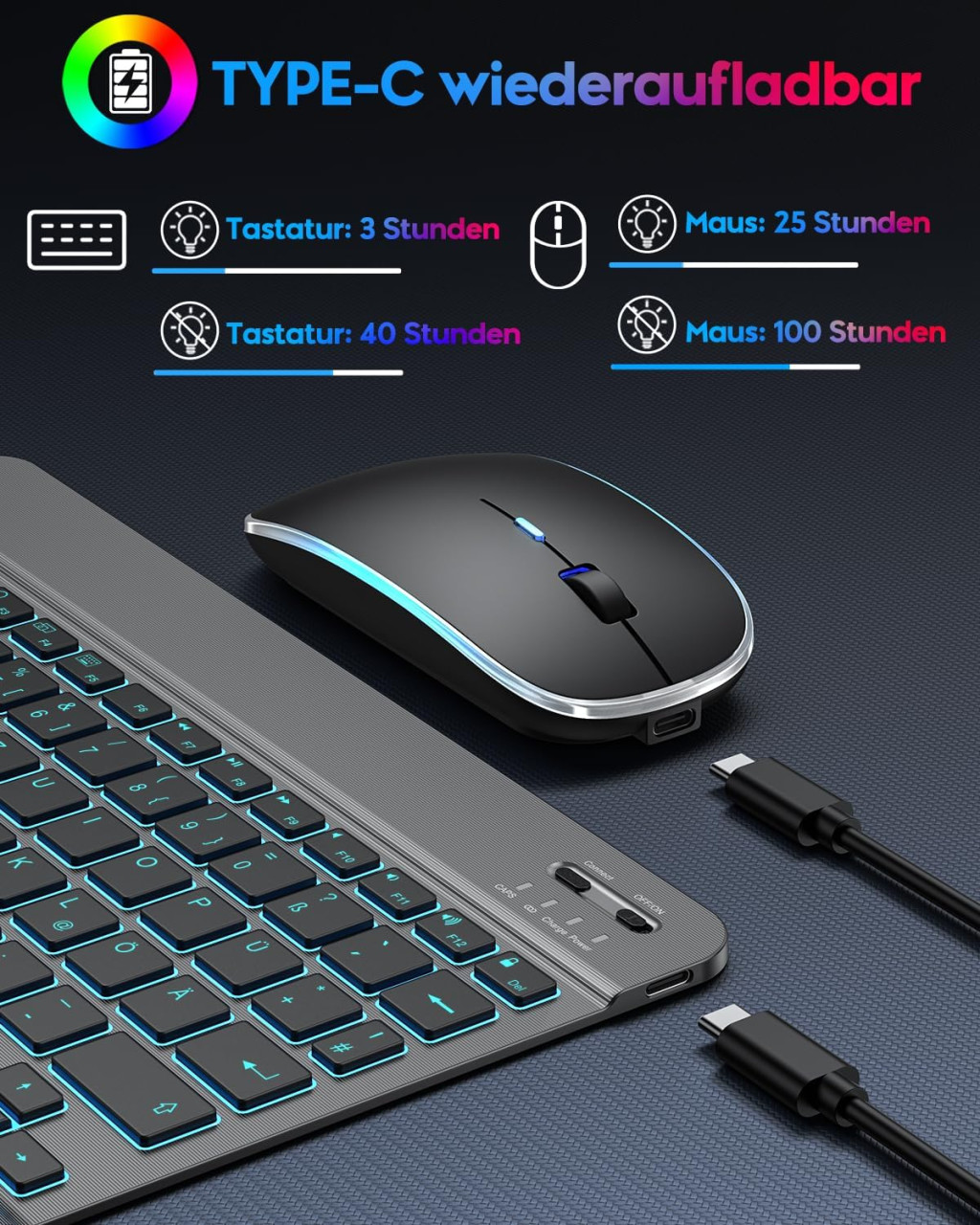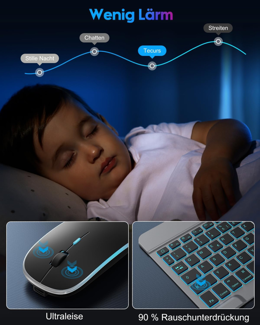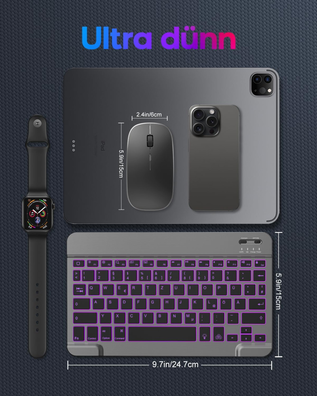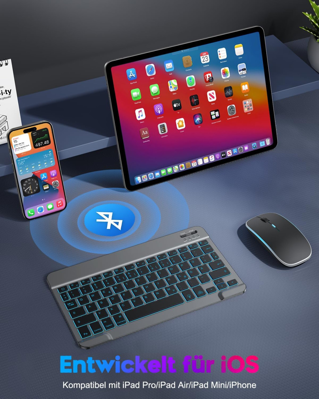 TECURS Bluetooth Billentyűzet és Egér Szett iPad-hez - QWERTZ Német Elrendezés