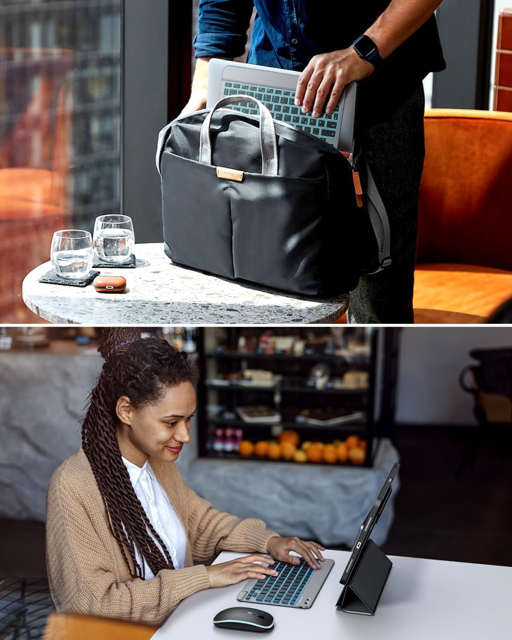 A TECURS Bluetooth billentyűzet és egér szett a professzionális és otthoni felhasználók számára egyaránt ideális választás. Kombinált funkcionalitása, hosszú üzemideje és elegáns dizájnja garantálja, hogy évekig megbízható társa lesz az iPad-ös munkavégzésnek.