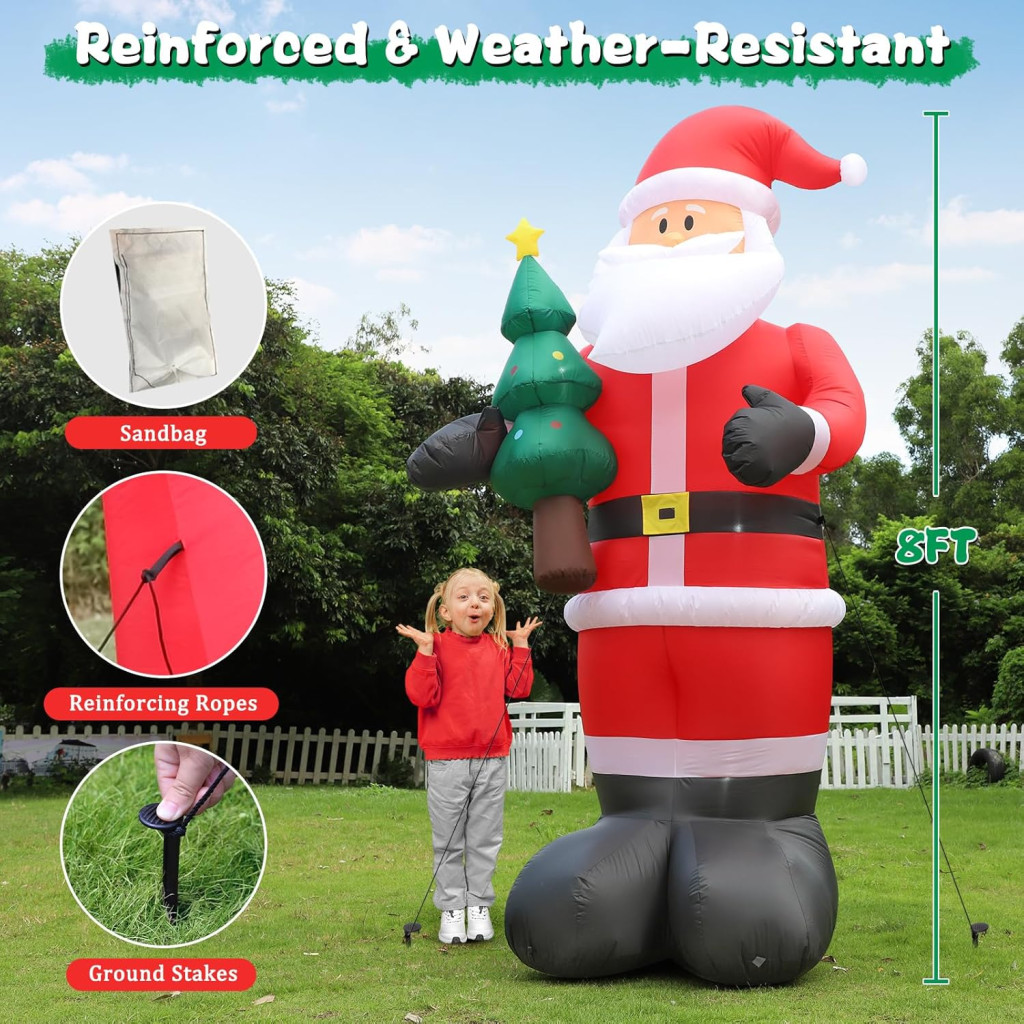 Ez a 245 cm magas felfújható Mikulás figura a piacon az egyik legjobb választás azoknak, akik professzionális minőségű, hosszú élettartamú karácsonyi dekorációt keresnek. Az Omdekor márkától származó termék garantálja a kiváló feldolgozást és a megbízható működést.