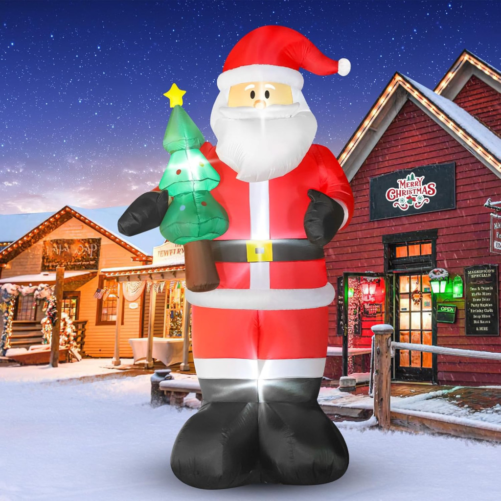Ez a gigantikus 245 cm magas felfújható Mikulás figura a tökéletes választás azoknak, akik igazán lenyűgöző karácsonyi dekorációt szeretnének. Az Omdekor márkától származó termék professzionális minőséget és hosszú élettartamot garantál. A klasszikus Mikulás design azonnal meghozza az ünnepi hangulatot bármely kertbe, teraszra vagy házfront elé.