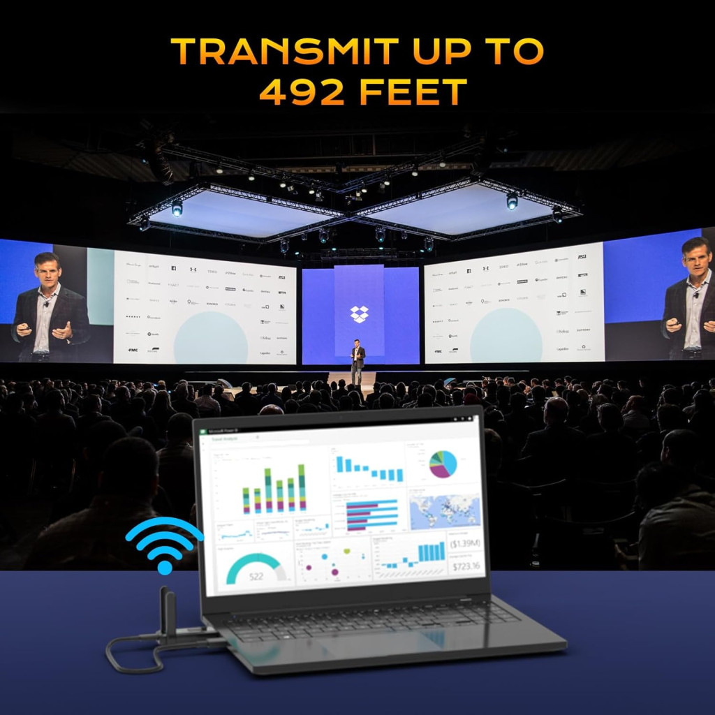 • 150 méter vezeték nélküli hatótáv: Stabil jel továbbítás akár 150 méter (500 láb) távolságra nyílt terepen, amely lehetővé teszi a rugalmas vezeték nélküli csatlakozást eszközök között
