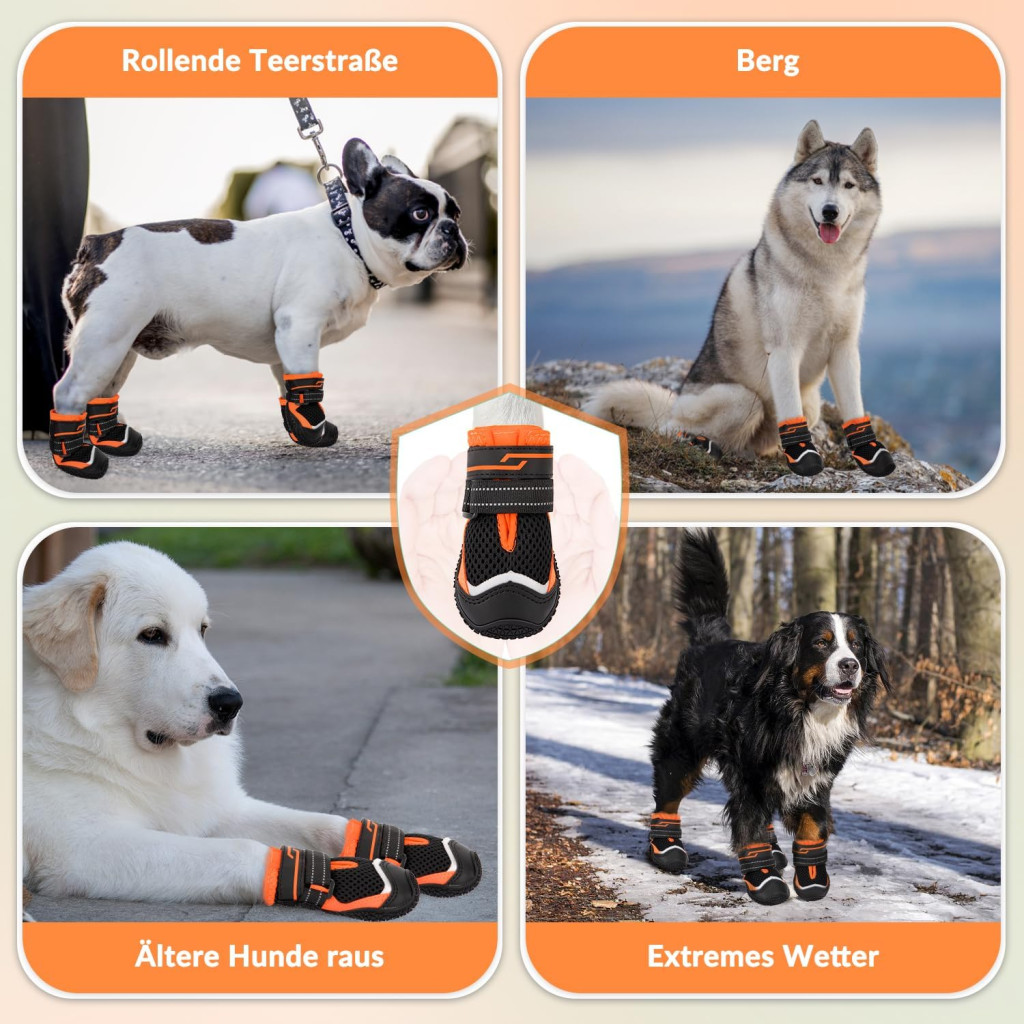 Eyein Kutyacipő 2 Pár Légáteresztő Talpvédelem Csúszásmentes Reflexes Velcro Narancssárga
