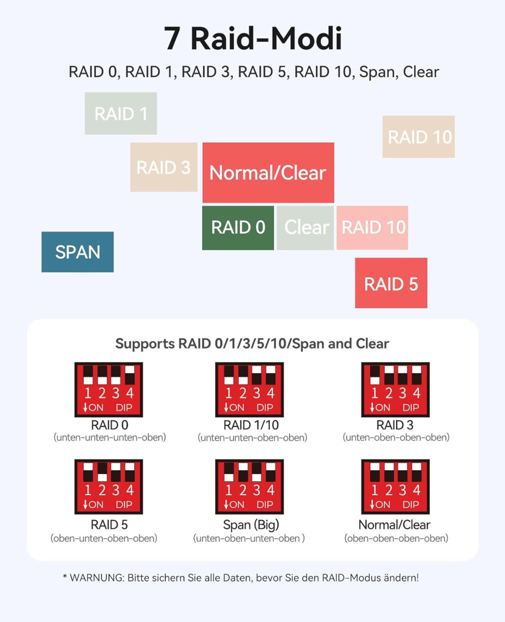 - 7 különböző RAID mód rugalmas konfiguráláshoz