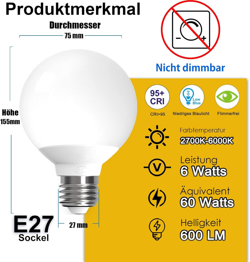 Az iLC G80 okos LED izzó forradalmi megoldást kínál modern otthonok számára. Ez a 6W-os, energiatakarékos világítás tökéletes választás azok számára, akik szeretnék otthonukat intelligens világítással felszerelni. A nagy méretű G80 gömb alakú dizájn elegáns megjelenést biztosít, míg az E27 szabványos foglalat egyszerű telepítést tesz lehetővé.