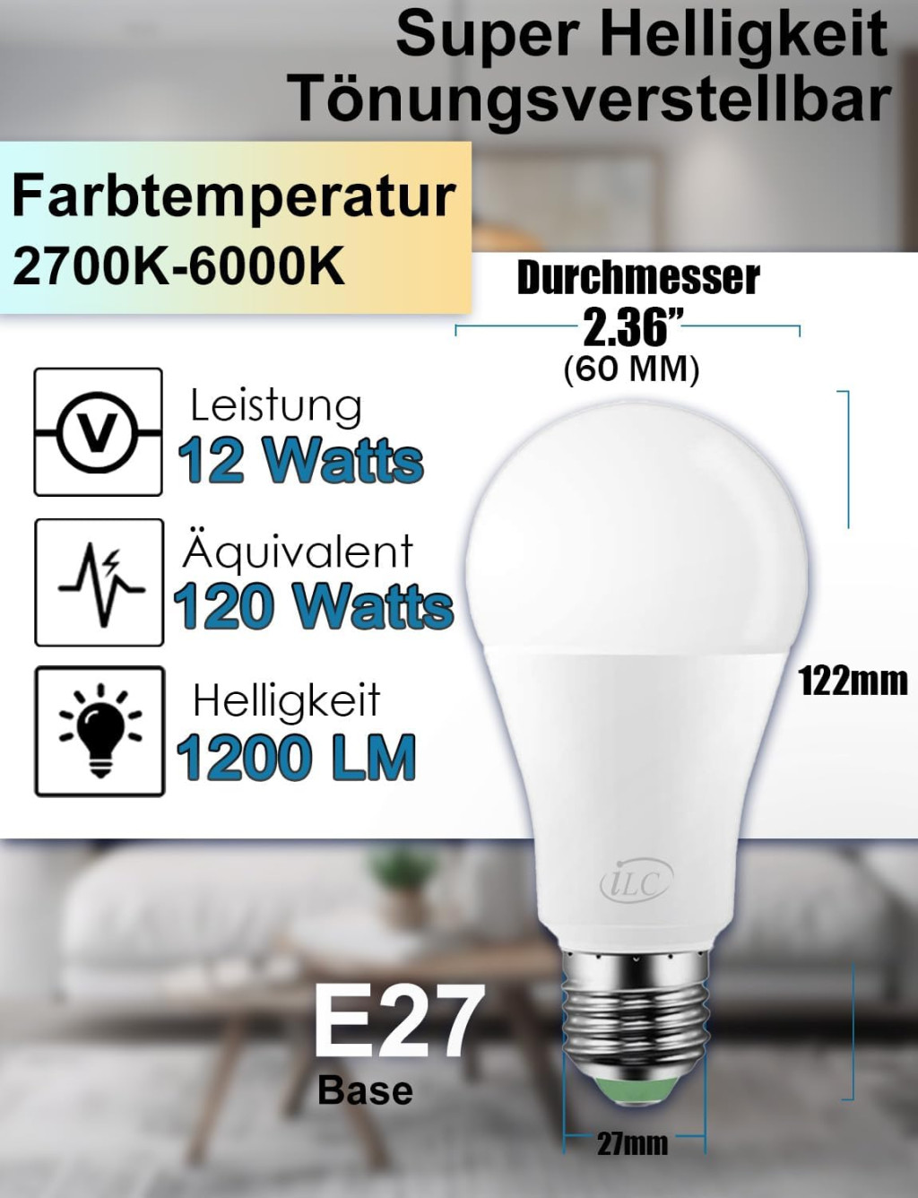 iLC LED Okos Izzó E27 Alexa Kompatibilis, Intelligens Világítás RGB Színváltós + Hideg Fehér 6000K, 2 Darabos Csomag