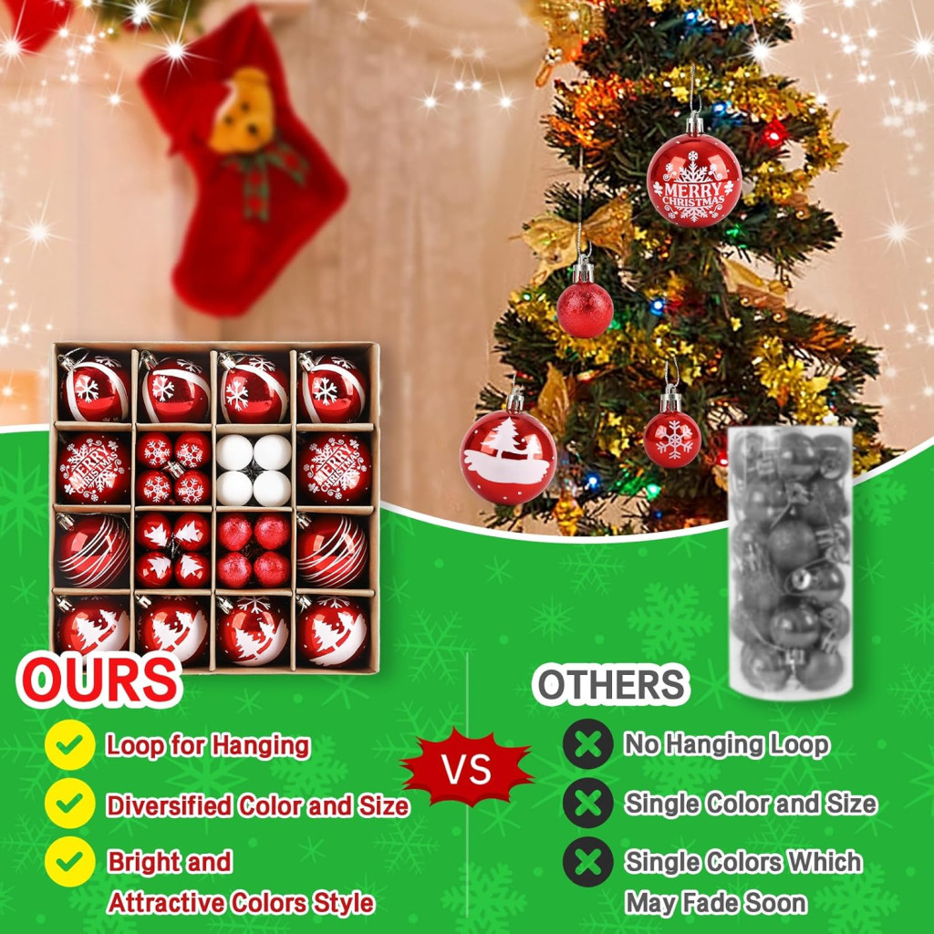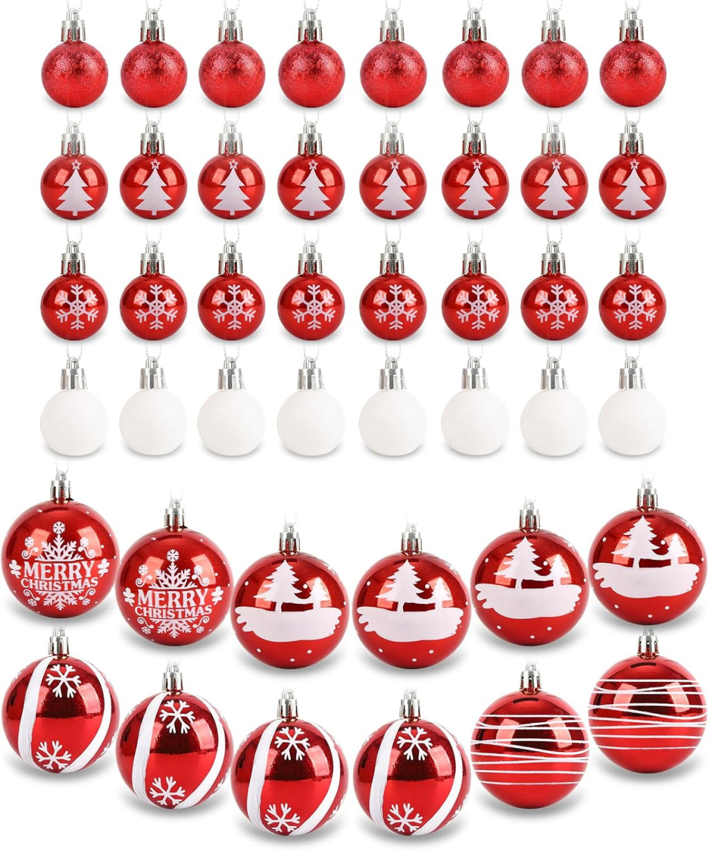 ilauke Karácsonyi Gömb Szett 44 Darab Piros Fehér Műanyag 3-6 cm Dekoráció