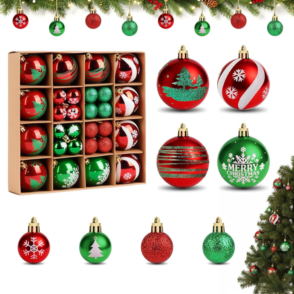 ilauke Karácsonyi Gömbök - 44 Darabos Szett Piros Zöld Dekoráció